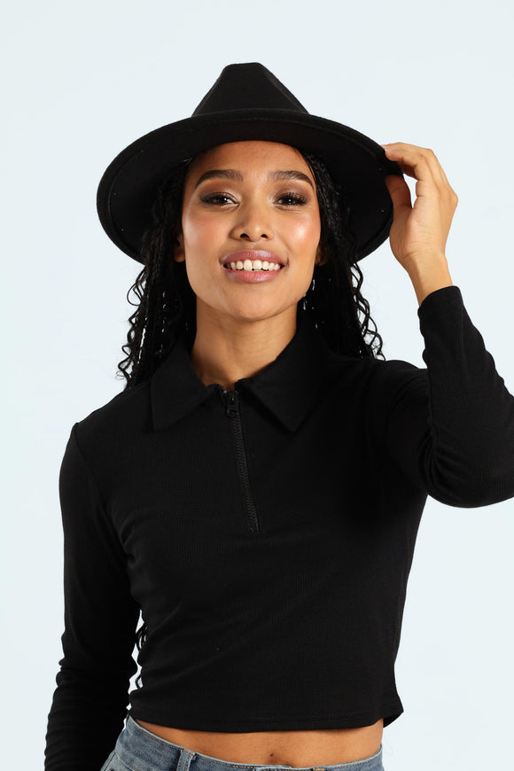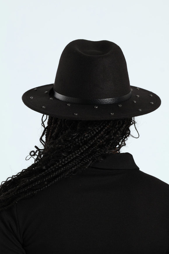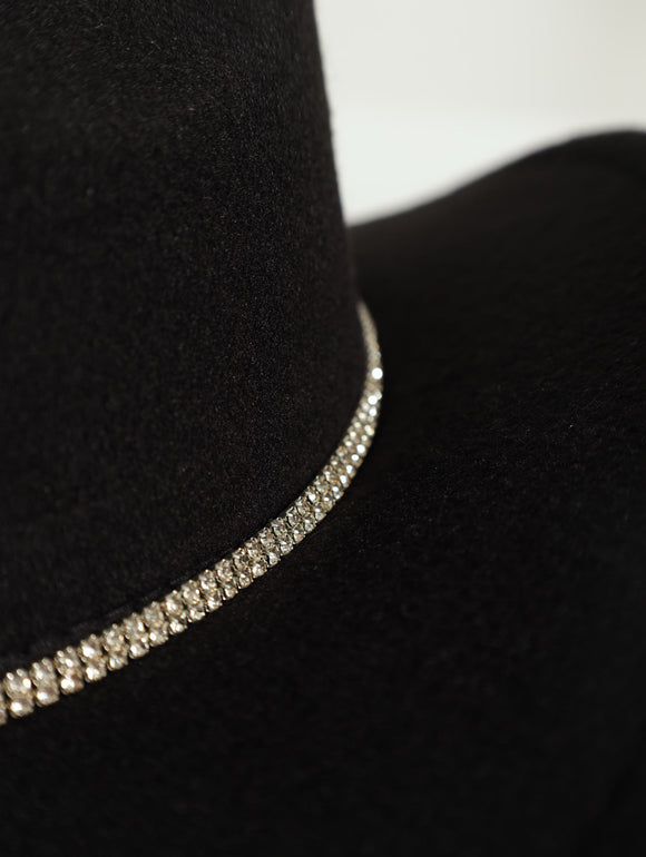 Diamante Felt Fedora Hat - Black