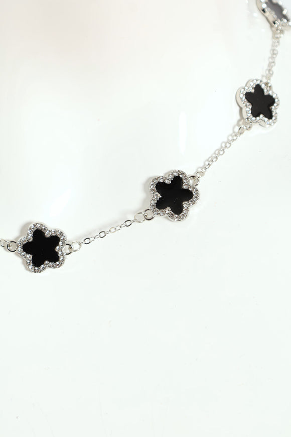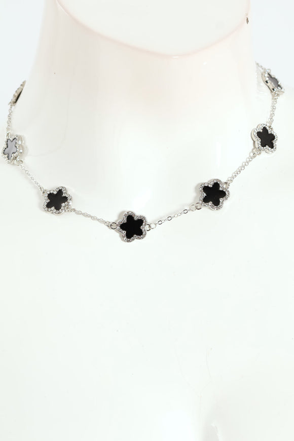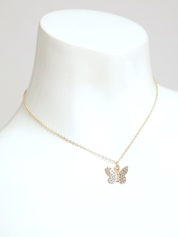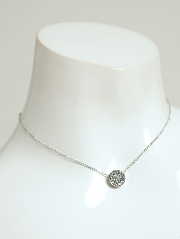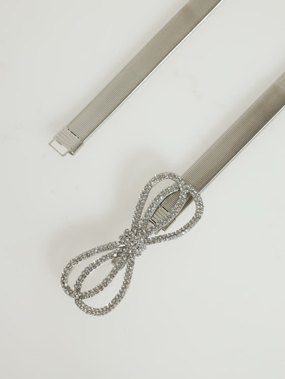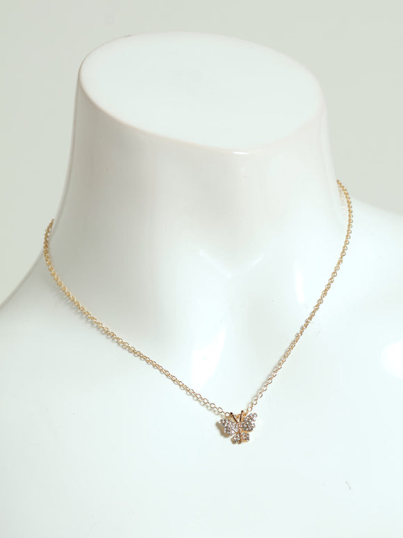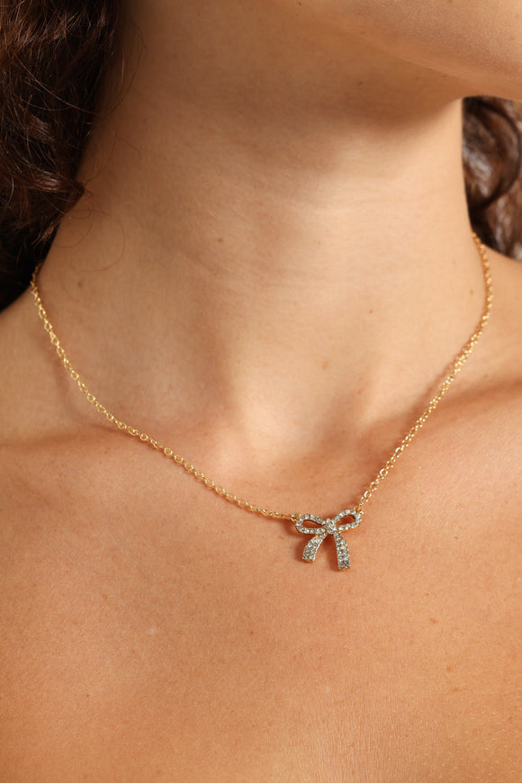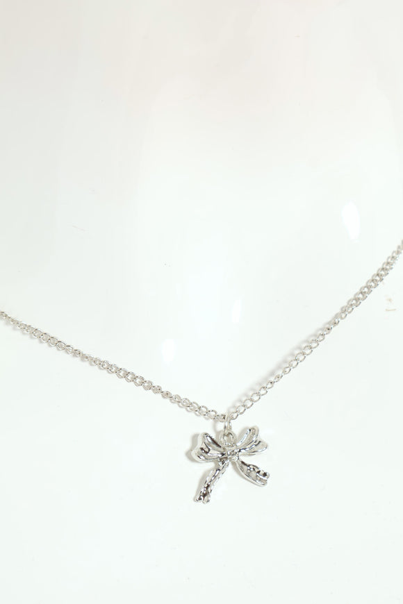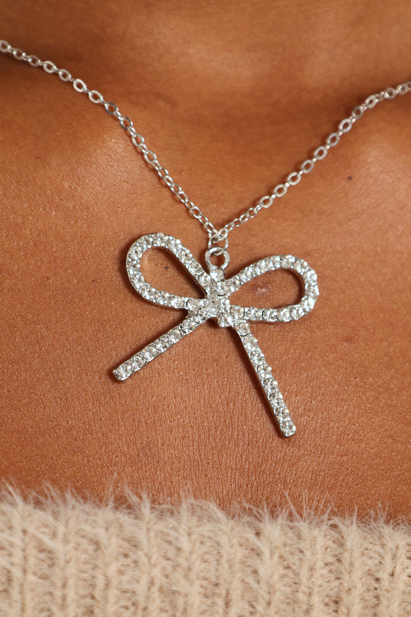 Diamante Bow Necklace - Silver