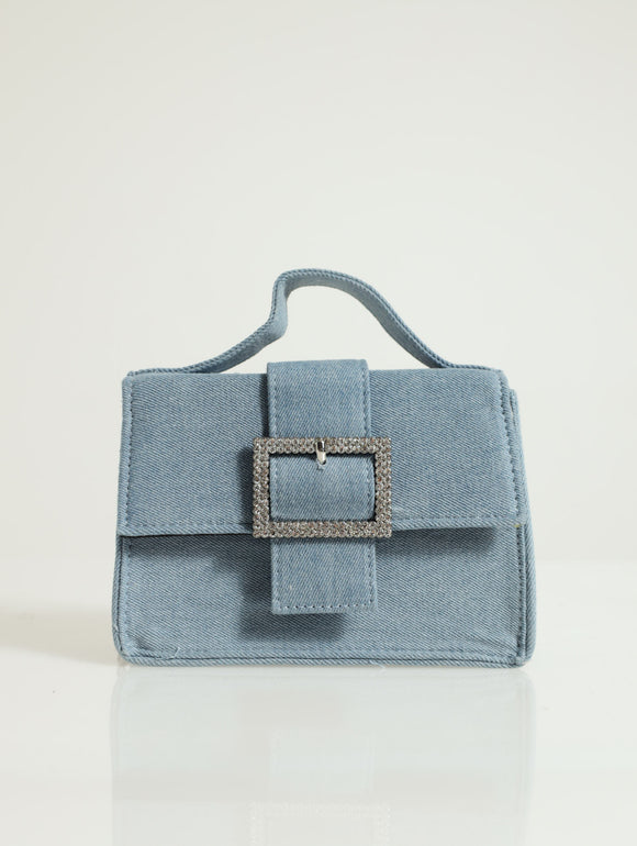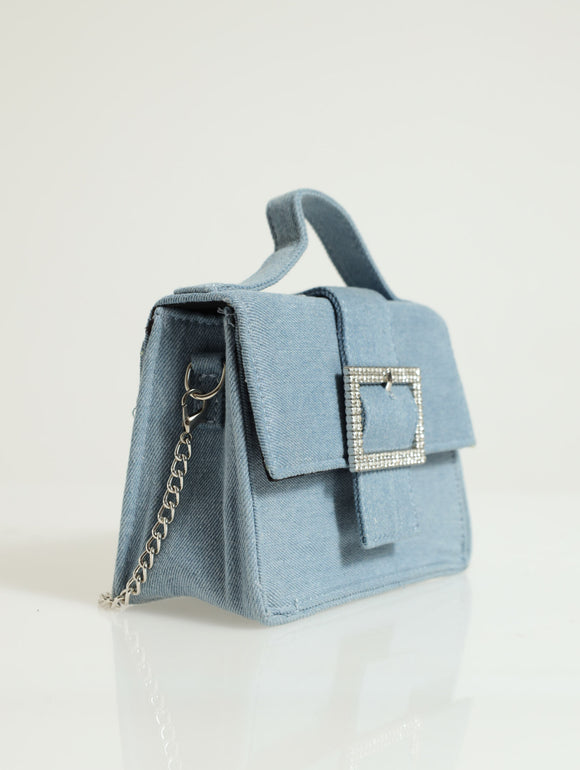 Diamante Buckle Denim Satchel