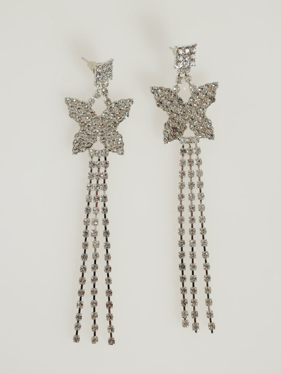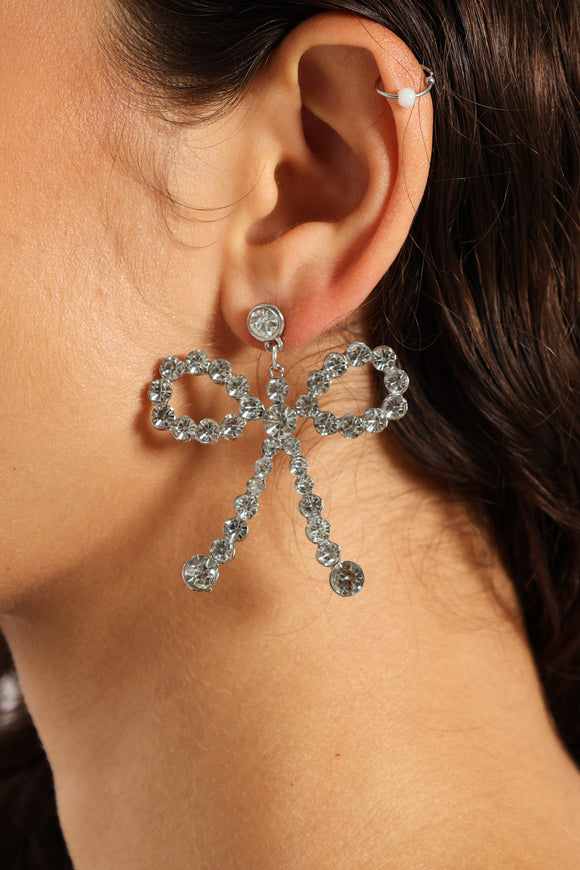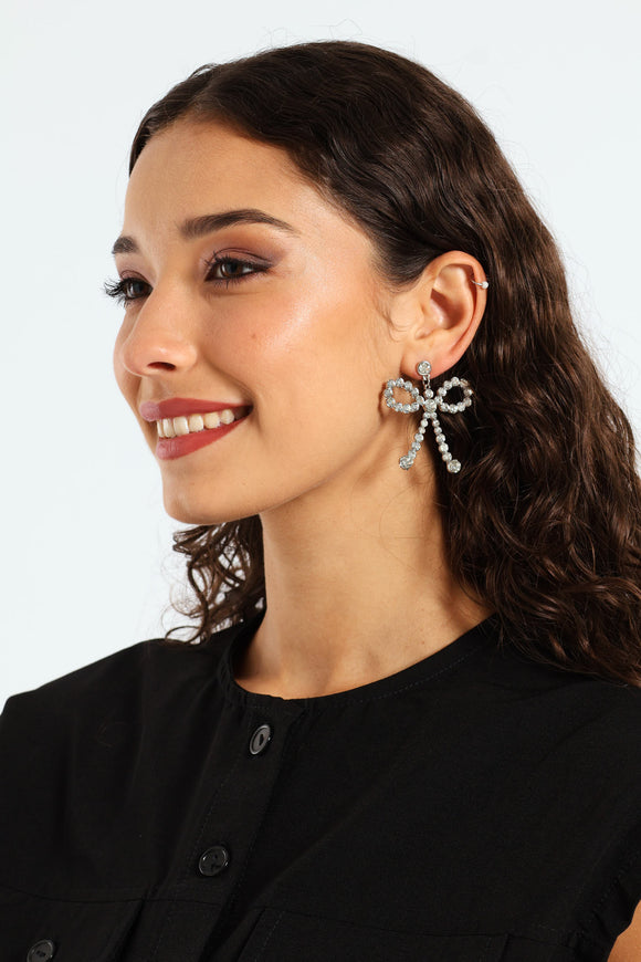 Diamante Bow Necklace & Matching Earring - Silver