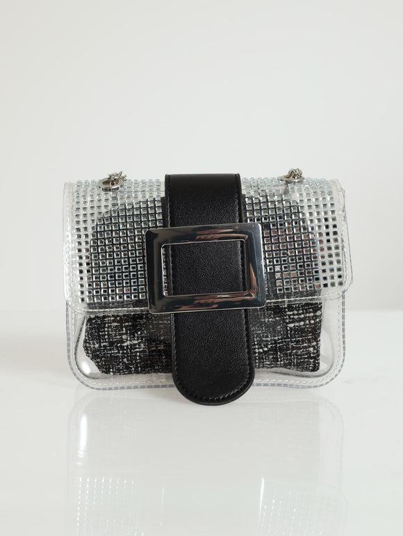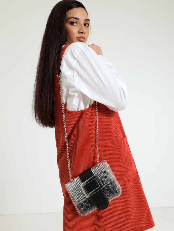 Diamante Flapover Chunky Chain Shoulder Bag
