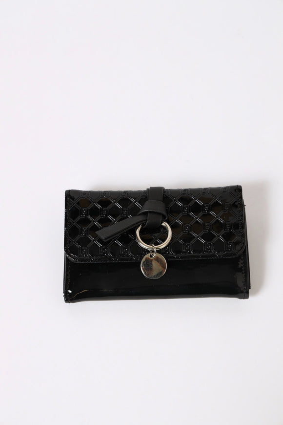 Embossed Lux Monogram Satchel Bag - Black