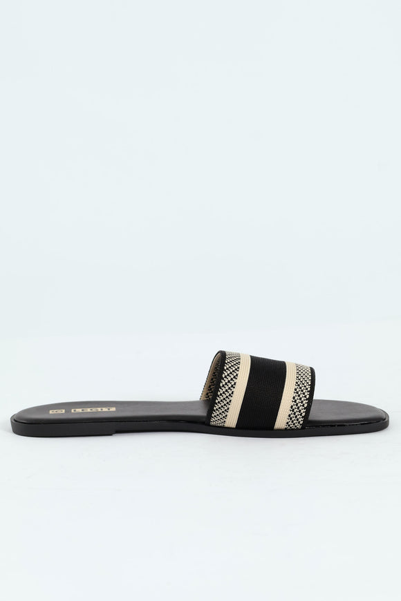 Flat One Strap Striped Knitted Push In Mule Sandal