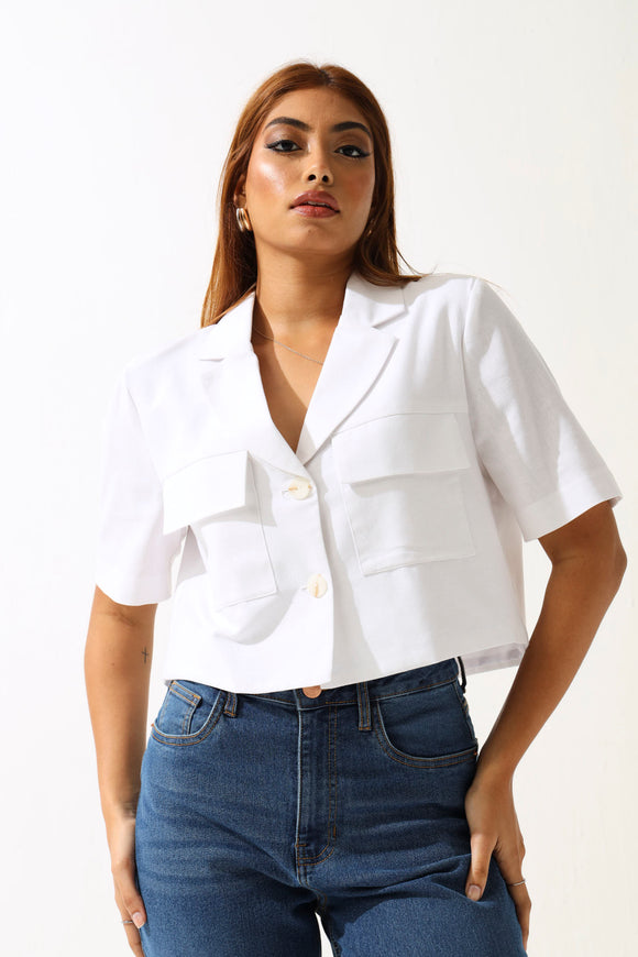 Short Sleeve Denim Crop Shirt - Ink