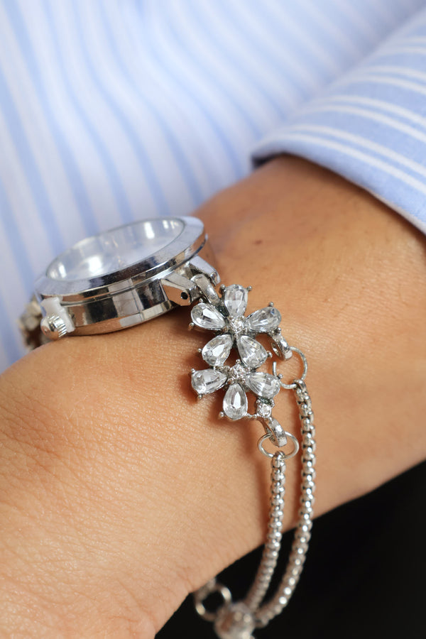 Gem Flower Bracelet Watch - Silver