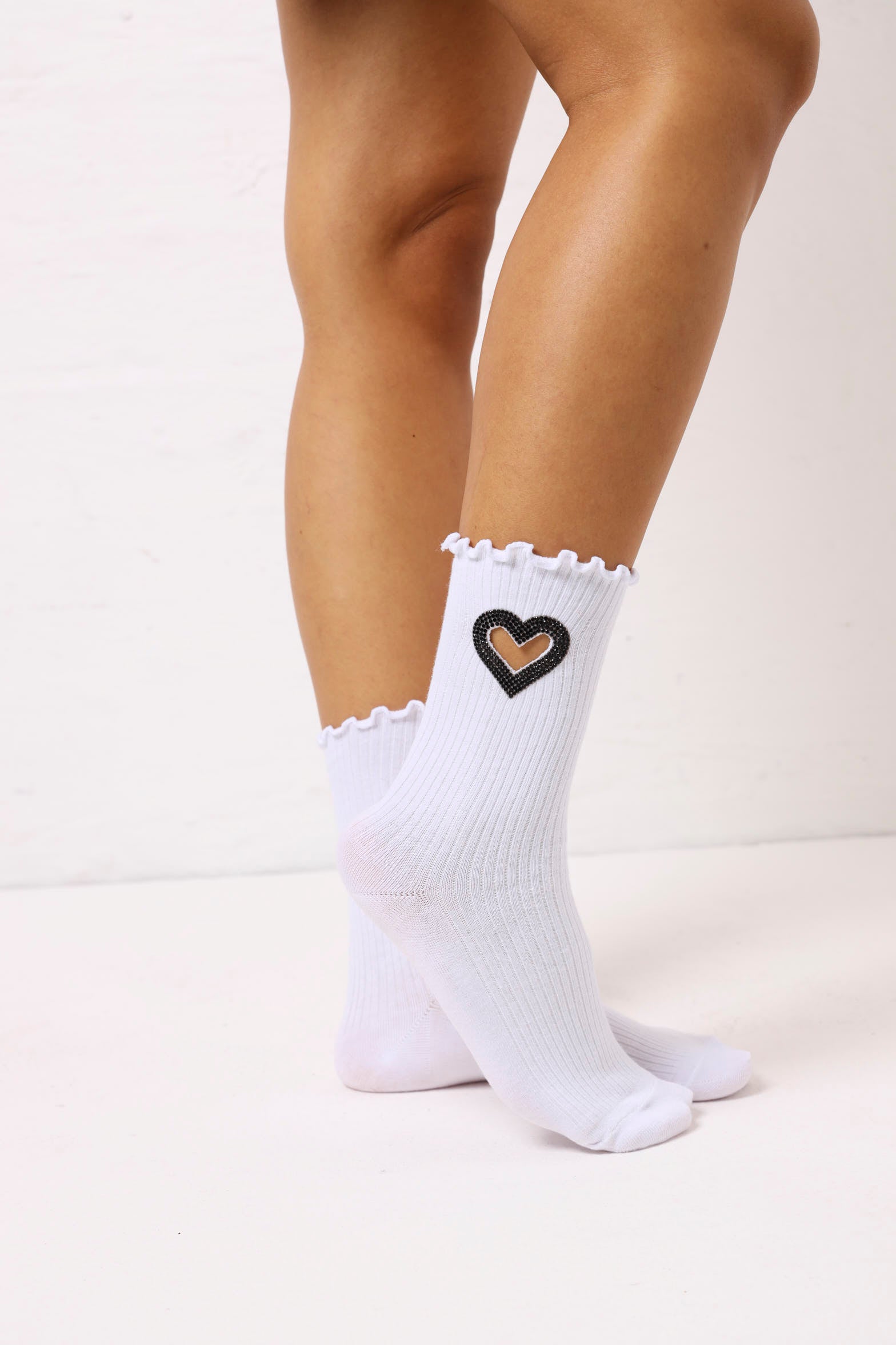 Step into sparkle with these fabulous bedazzled heart crew socks in classic black! This 2-pack keeps your feet comfy while your style shines from the ground up. Glittery hearts add just the right amount of sass to your everyday look—whether you're showing them off or keeping them as your little secret. Perfect for adding personality to sneakers, loafers, or just lounging at home. Because why should your accessories have all the fun?