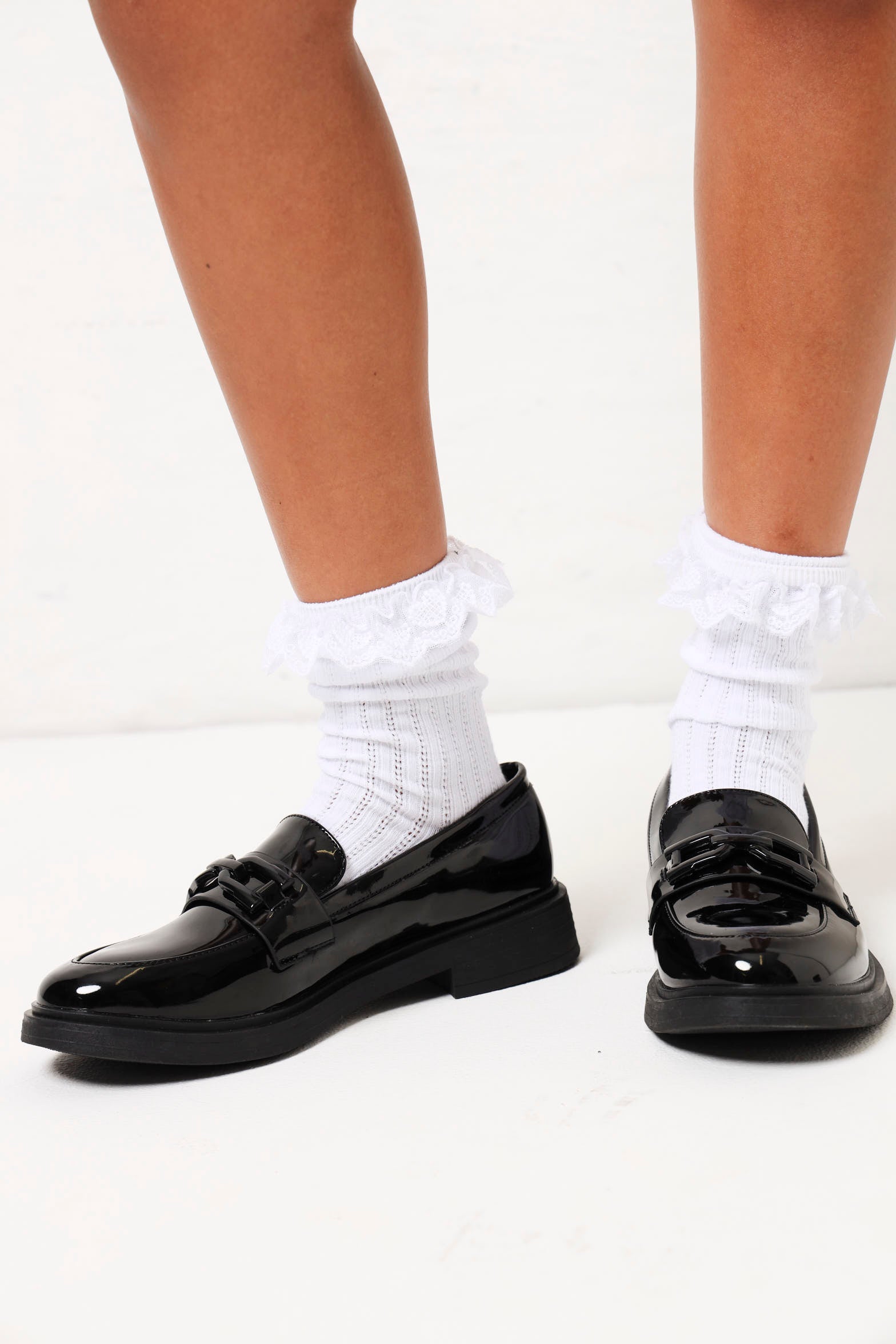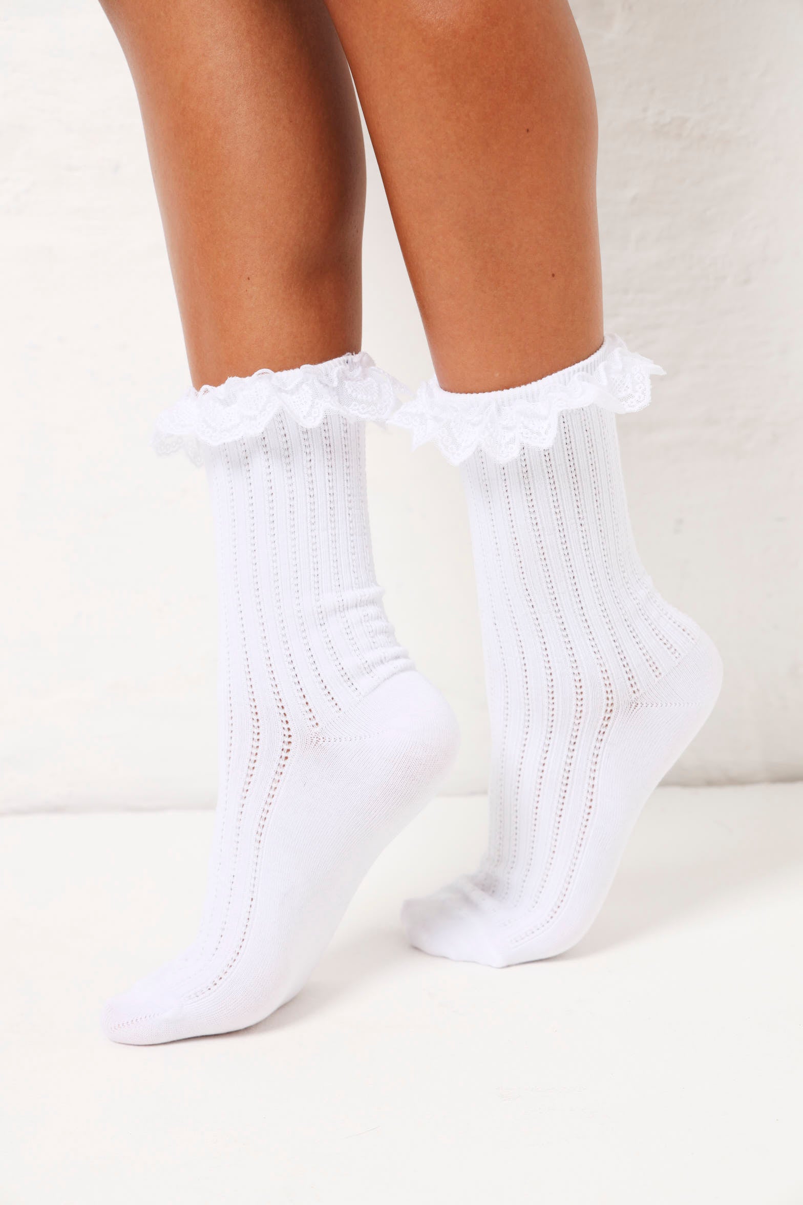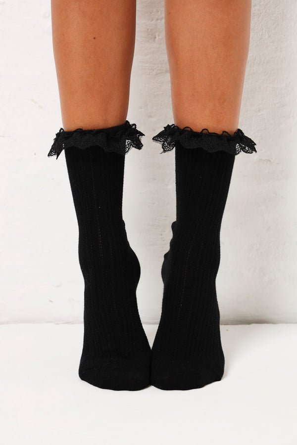 2 Pack Heart Lace Trim Crew Sock - Black/White