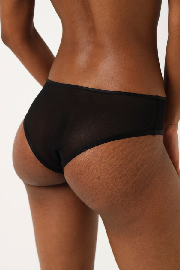 2 Pack Mesh Embroided Brazilian Panties - Black