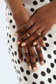 Stack up on sparkle with the 7 Pack Epoxy & Diamante Heart & Bow Rings in Gold. This playful set features charming hearts, bows, and shimmering diamantes, perfect for mixing, matching, and adding a fun pop of bling to any outfit. Share the love — one finger at a time!
