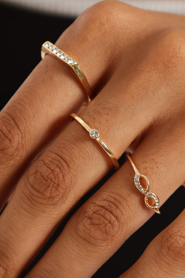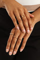 Mix and match your sparkle with the playful 7 Pack Saddle Knot Variety Rings in Gold. Each ring features a unique knot design, giving you endless ways to stack, style, and show off your fun side with a touch of golden charm!