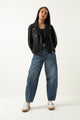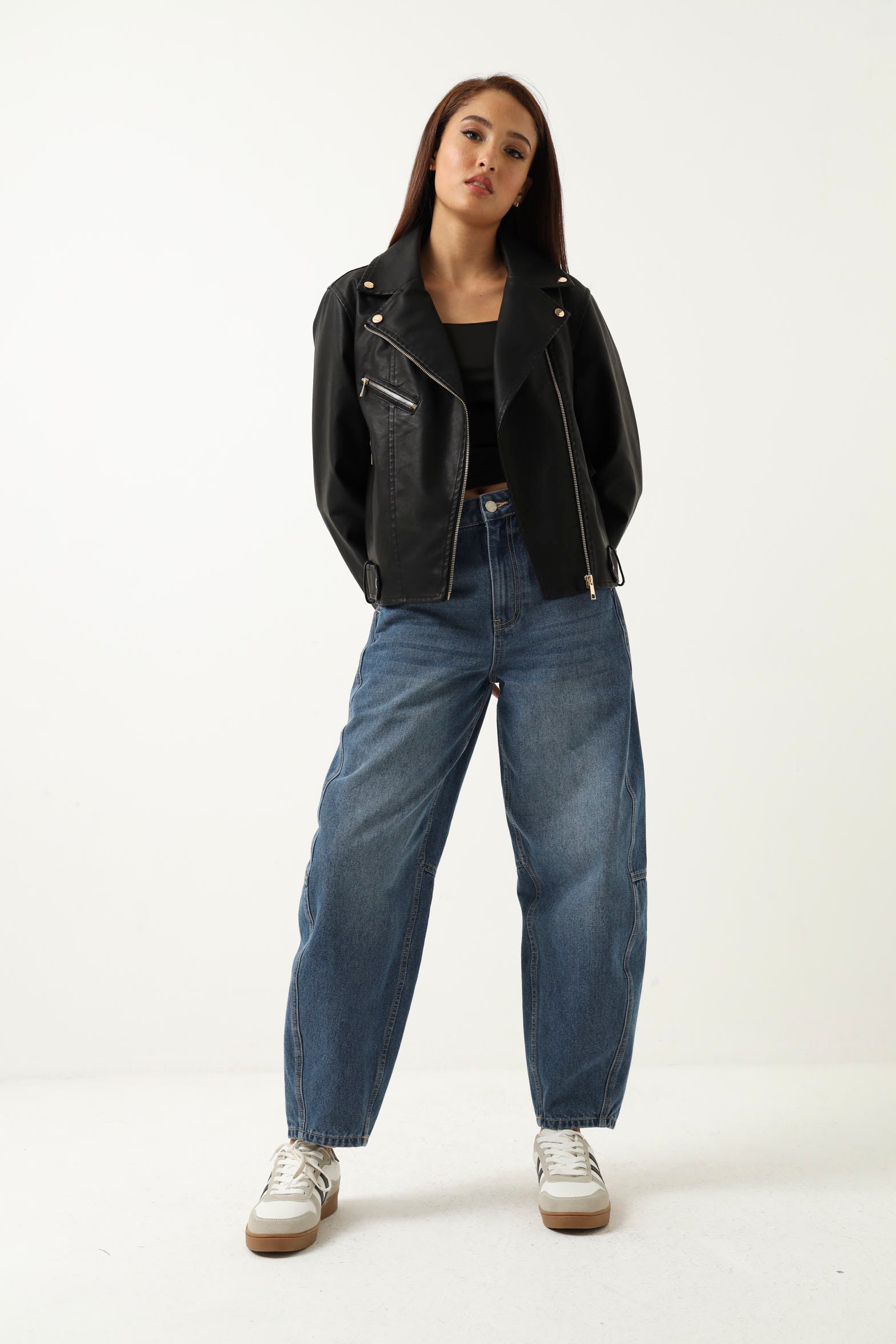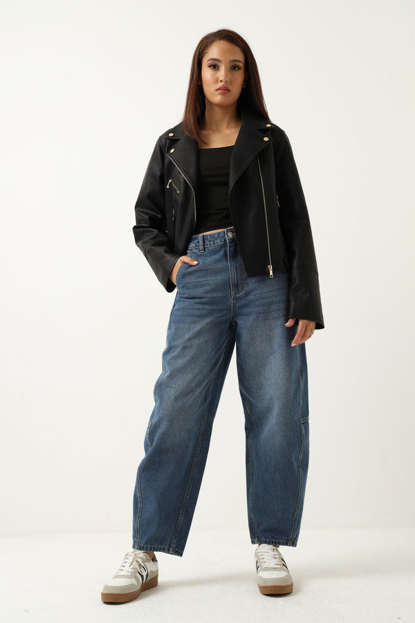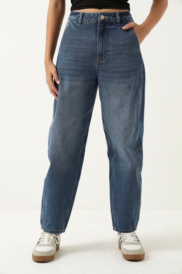 Effortless style meets contemporary edge with these barrel jeans in a rich dark wash. The standout back seam detailing adds visual interest and dimension, elevating the classic silhouette. Crafted for a relaxed, straight-leg fit that works with everything from sneakers to heels, these jeans deliver versatile everyday wear with a modern twist. Perfect for building a wardrobe of timeless pieces that feel fresh and current.