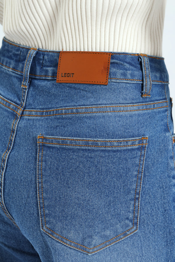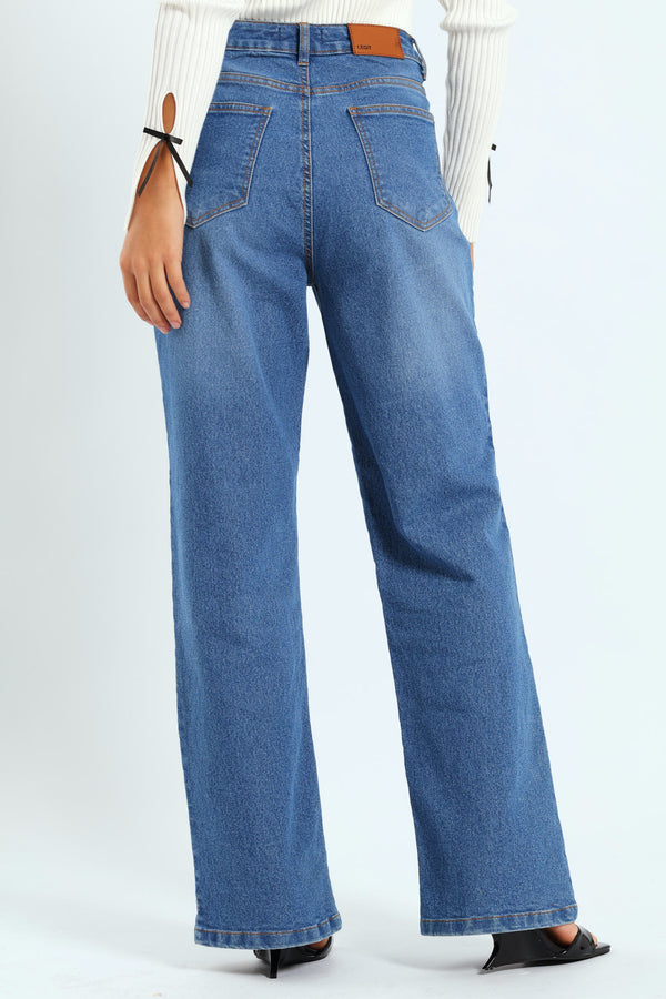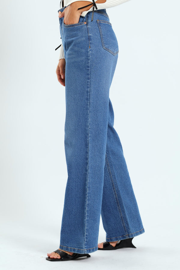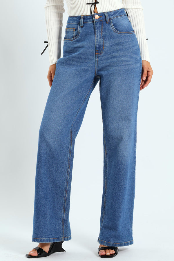 Introducing our Basic Wide Leg Jean in a stylish Medium Wash. The perfect mix of comfort and fashion, these jeans offer a relaxed fit with a wide leg for a flattering silhouette. Upgrade your denim game with these must-have jeans.