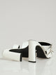 Elevate your look with our Block Court Heel! These stylish heels feature a chunky buckle detail, adding a touch of boldness to any outfit. The sturdy block heel provides all-day comfort and added height. Make a statement with our Block Court Heel in classic white!
