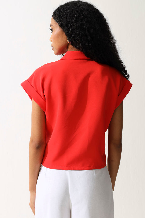 Button Detail Barbi Top - Red