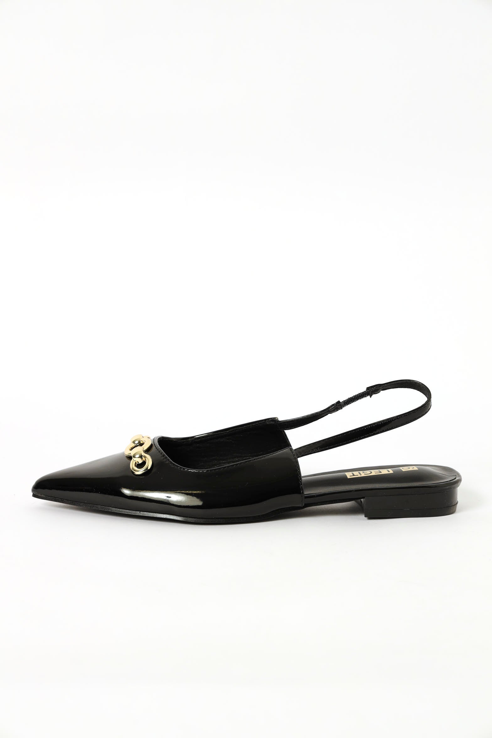 Step into the spotlight with this stunning black slingback pump that's got serious personality. The delicate chain detail catches the light just right, adding a touch of glamour without trying too hard. Whether you're heading to the office or a night out, this versatile heel pairs seamlessly with any outfit and promises to turn heads. Because life's too short for boring shoes make every step count.