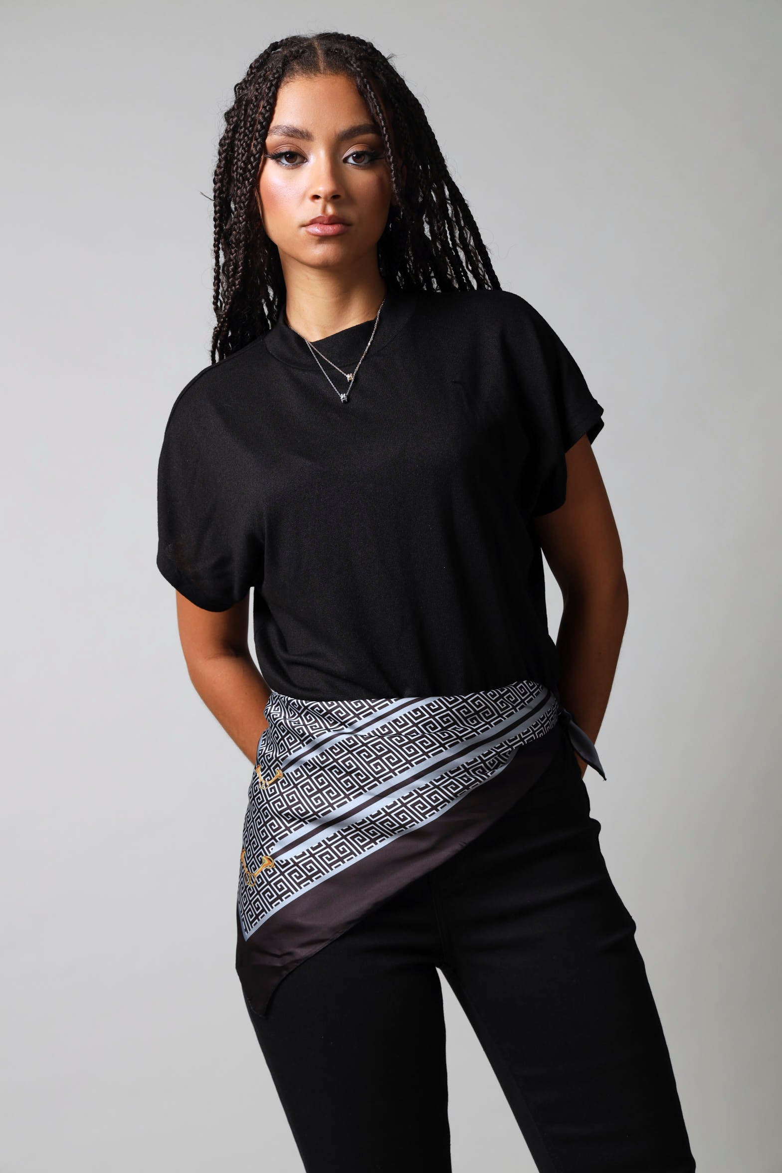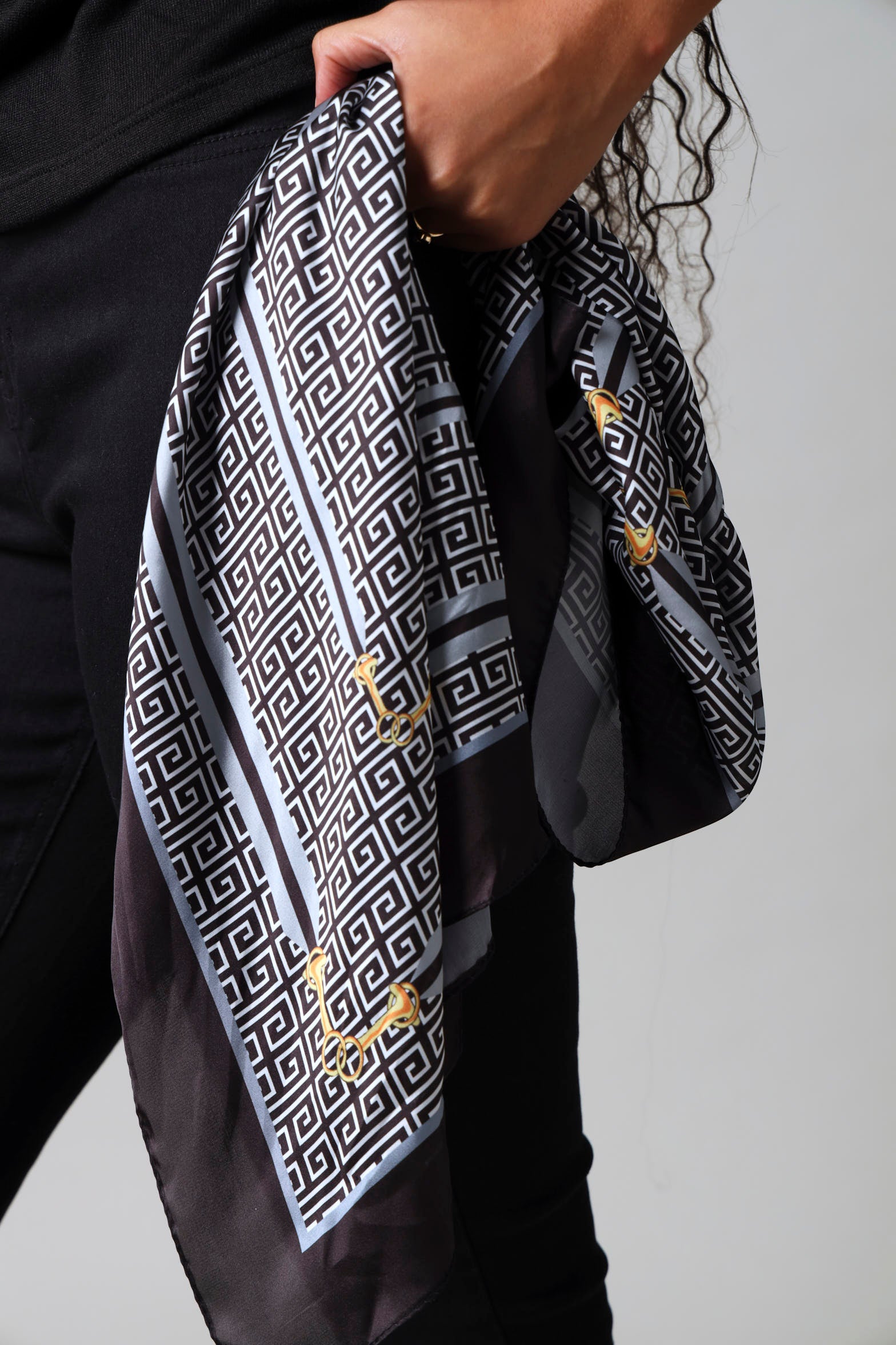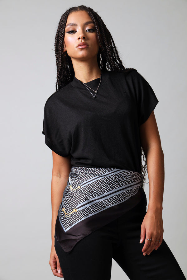 Wrap yourself in effortless elegance with this Chain Print Satin Scarf. The luxe satin fabric drapes beautifully while the eye catching chain print adds a dash of personality to any outfit. Perfect for elevating your everyday look or adding flair to a special occasion. Versatile, chic, and undeniably fun.