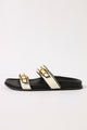 Step into comfort with a playful twist! These moulded sandals feature eye-catching contrast detail and a secure double strap design that keeps up with your every move. The lightweight, supportive sole makes them perfect for casual days, beach trips, or whenever you need reliable footwear that doesn't compromise on style. Slip them on and feel the difference, comfort that actually looks good.