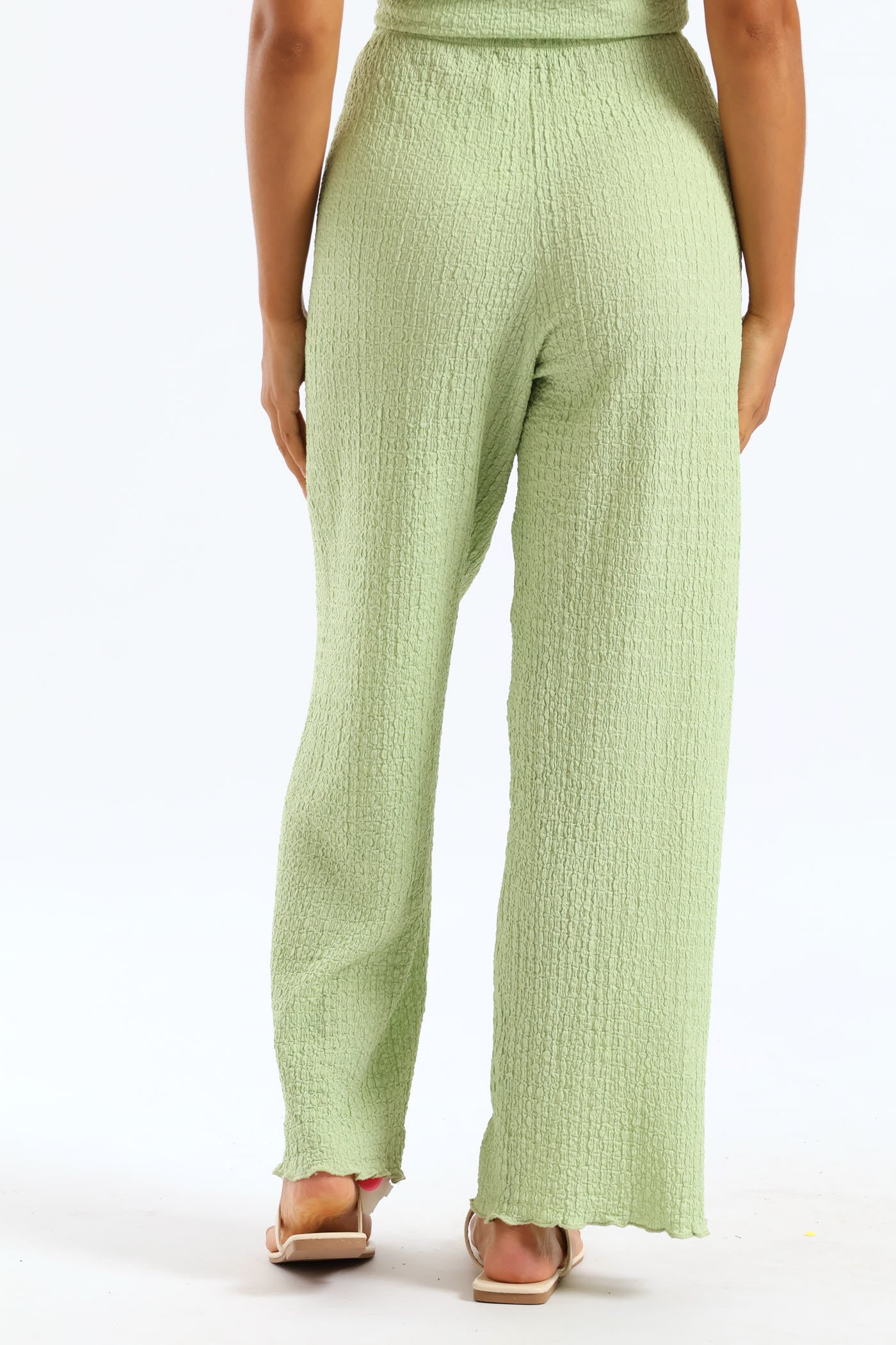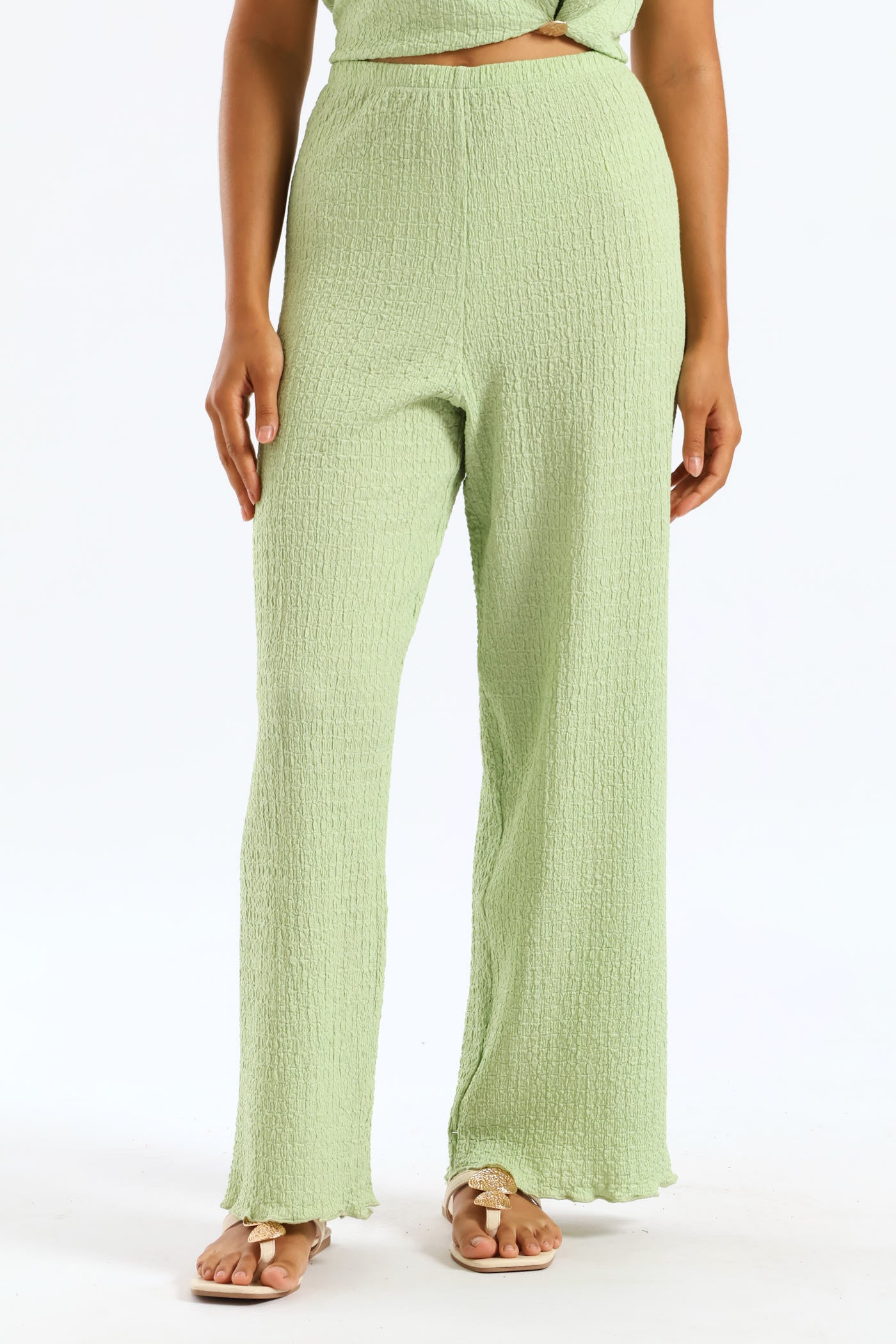 Step into comfort and style with these mint crinkle knit culotte pants. Their breezy, wide-leg fit lets you move freely while the textured fabric adds a fun, relaxed vibe. Perfect for playful days out or cozy lounging, these pants bring a fresh pop of color and effortless cool to your wardrobe.