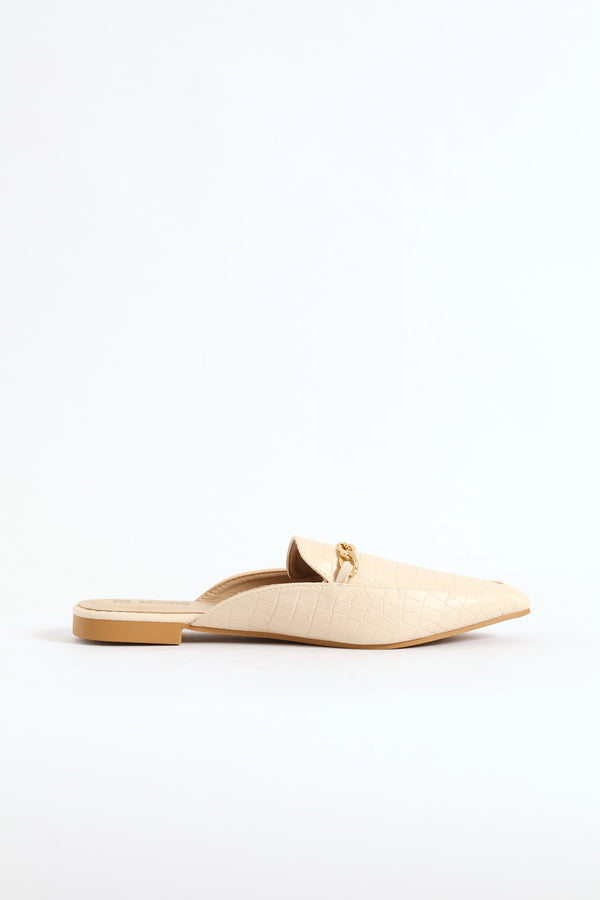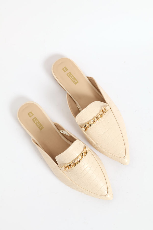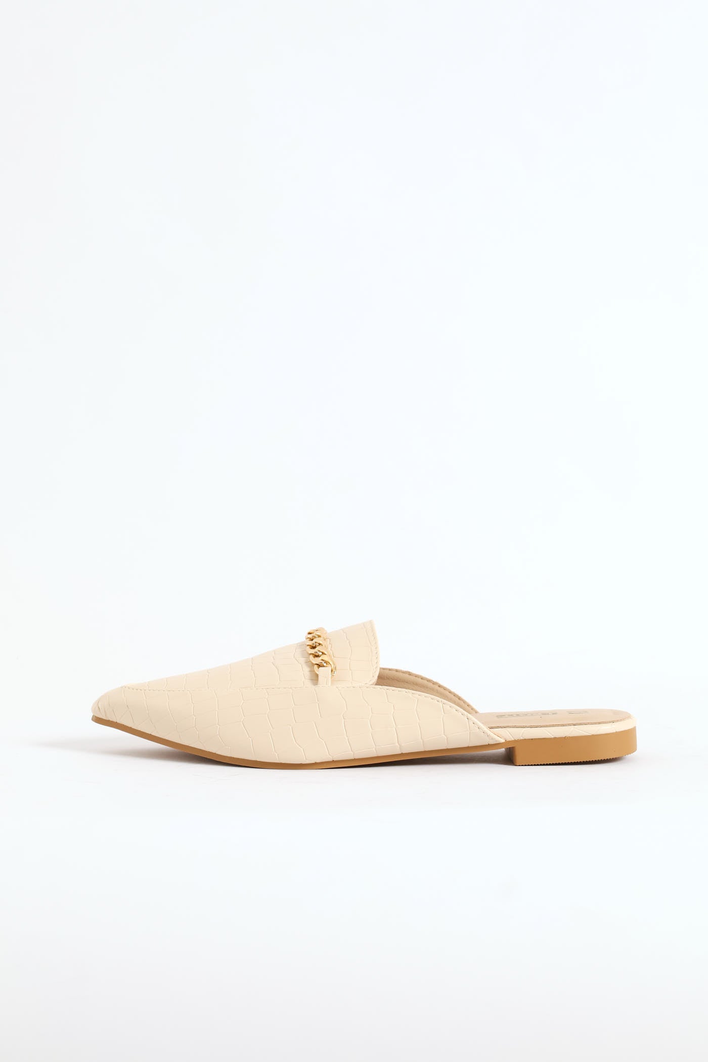 Dainty Chain Trim Spointy Push In Loafer - Cream