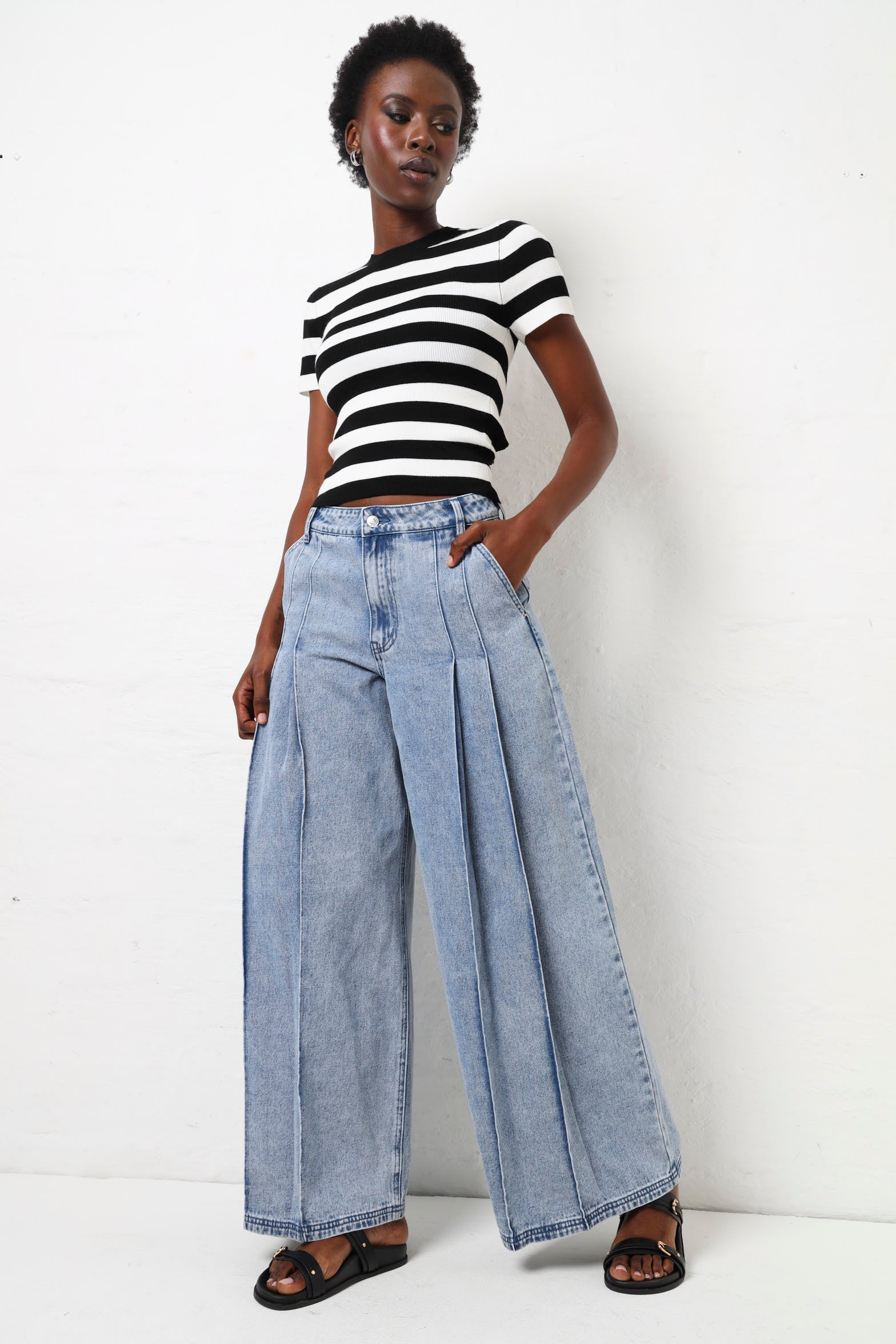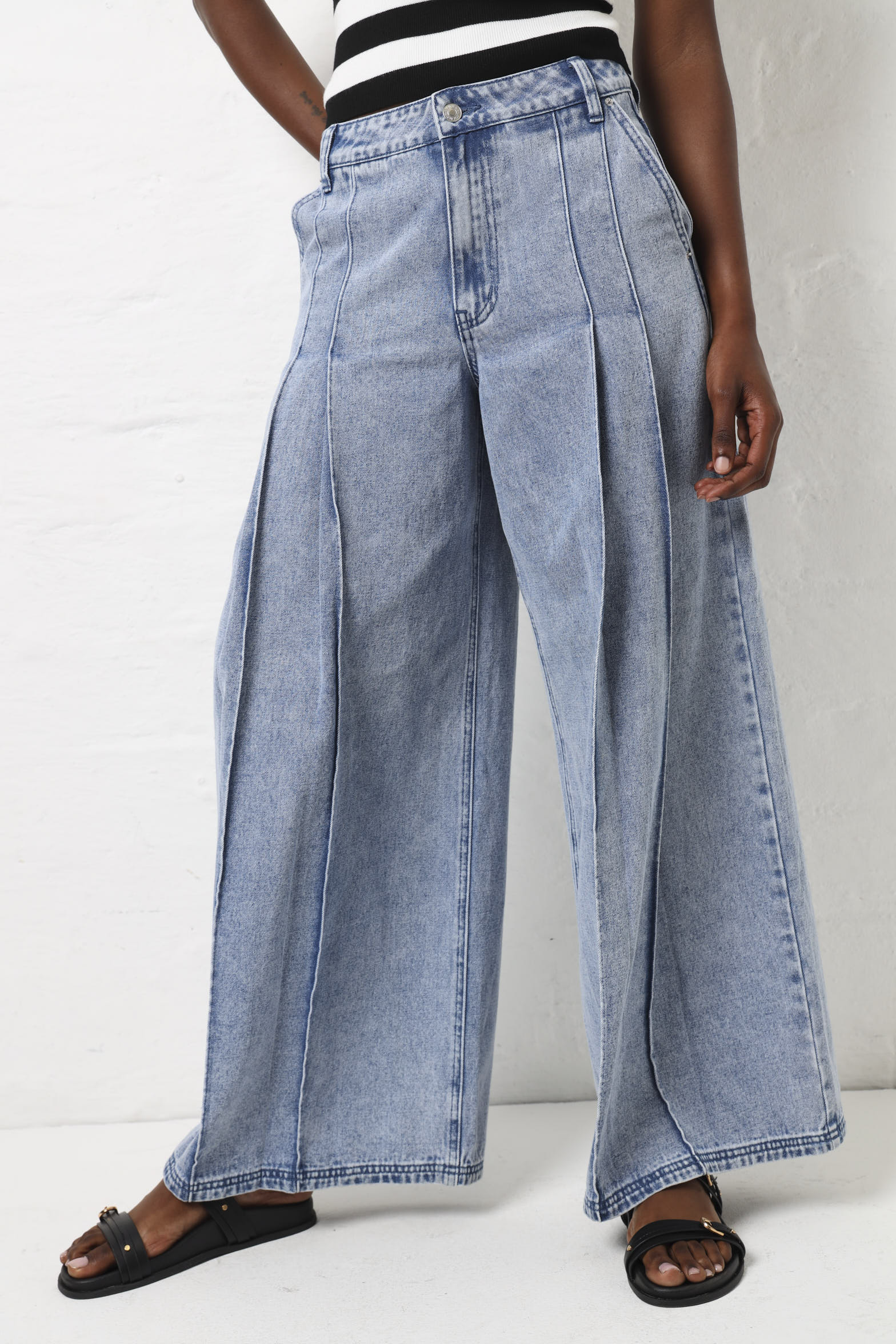 Say hello to the jean that does it all our Deep Pleated Wide Leg in a fresh light wash. Those striking front pleats create instant dimension and swagger, while the roomy wide-leg cut lets you move freely without sacrificing style. Light wash means it plays well with literally everything in your closet, from crisp whites to bold prints. Dress them down with your favourite sneakers or elevate them with a blazer and boots. These jeans are your new go-to for looking effortlessly put-together, no matter the occasion.