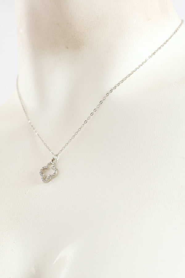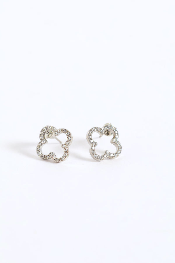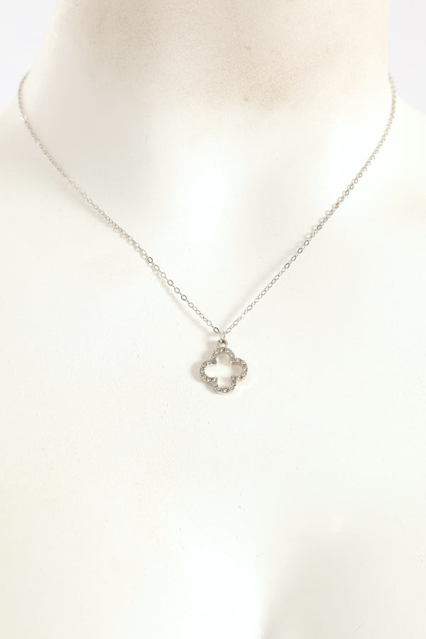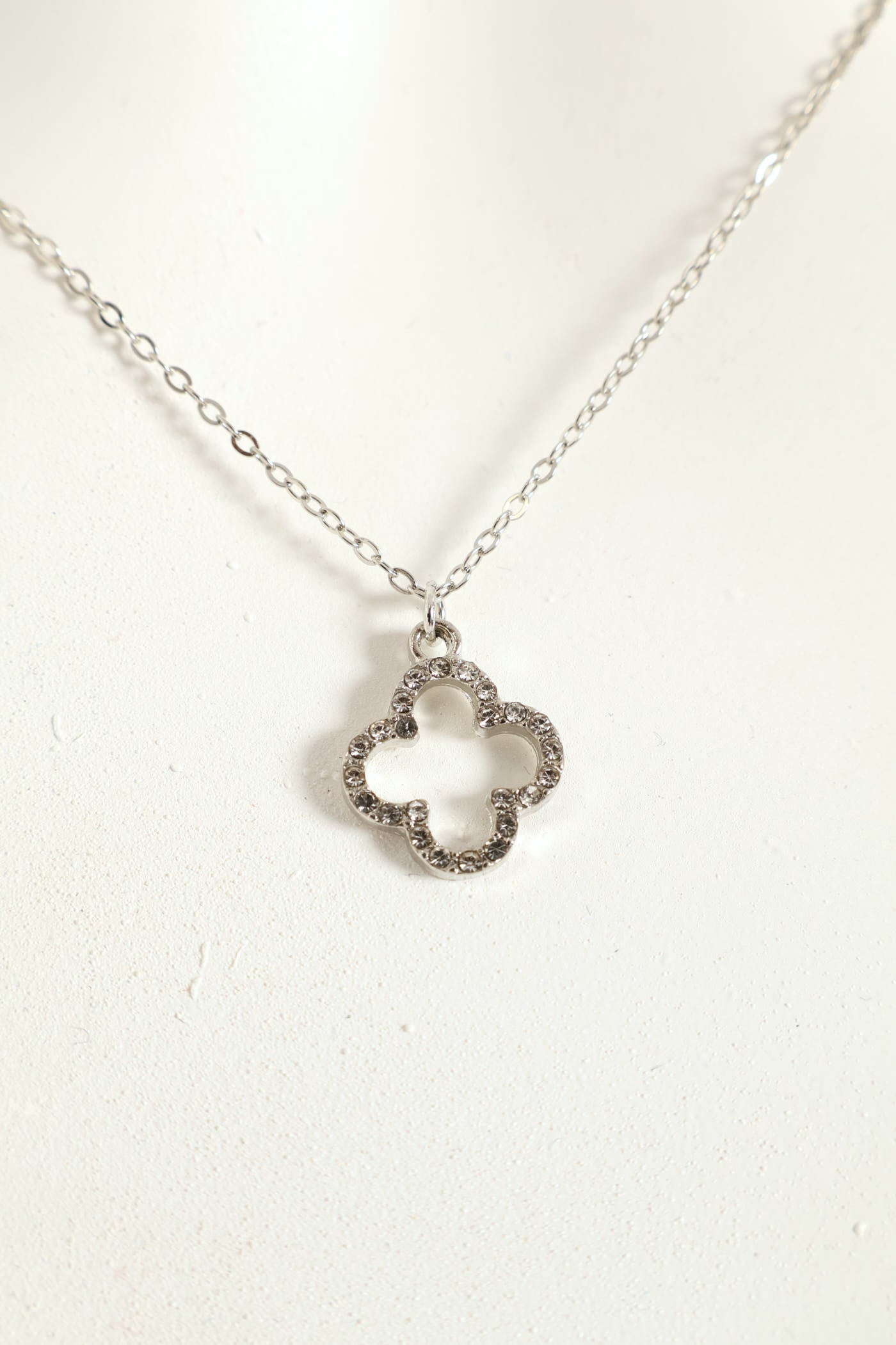 Diamante 4 Leaf Flower Pendant & Matching Earrings - Silver