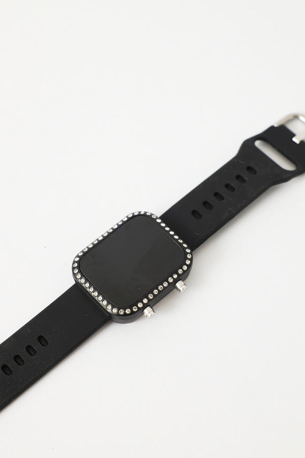 Diamante Dial Minimal Smart Watch - Black