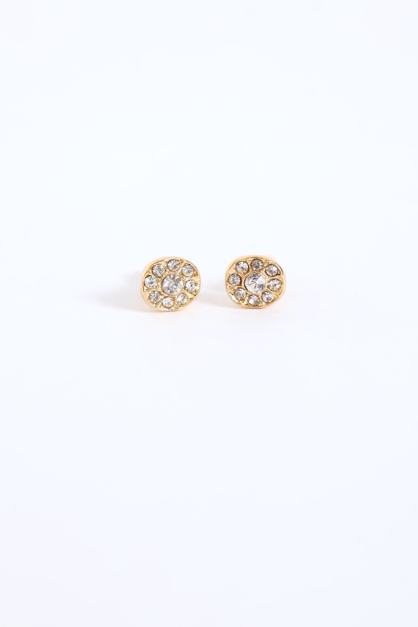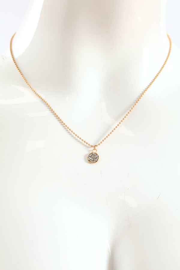 Diamante Disc Pendant Necklace & Matching Earrings - Gold