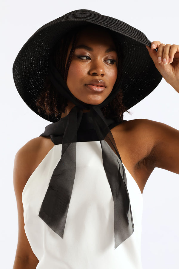 The Dome Straw Sun Hat with Ties in black offers a refined blend of classic craftsmanship and modern sophistication. Made from high-quality straw, it provides elegant sun protection, while the adjustable ties ensure a secure and polished fit. Perfect for stylish outdoor events, this hat enhances any ensemble with understated grace.