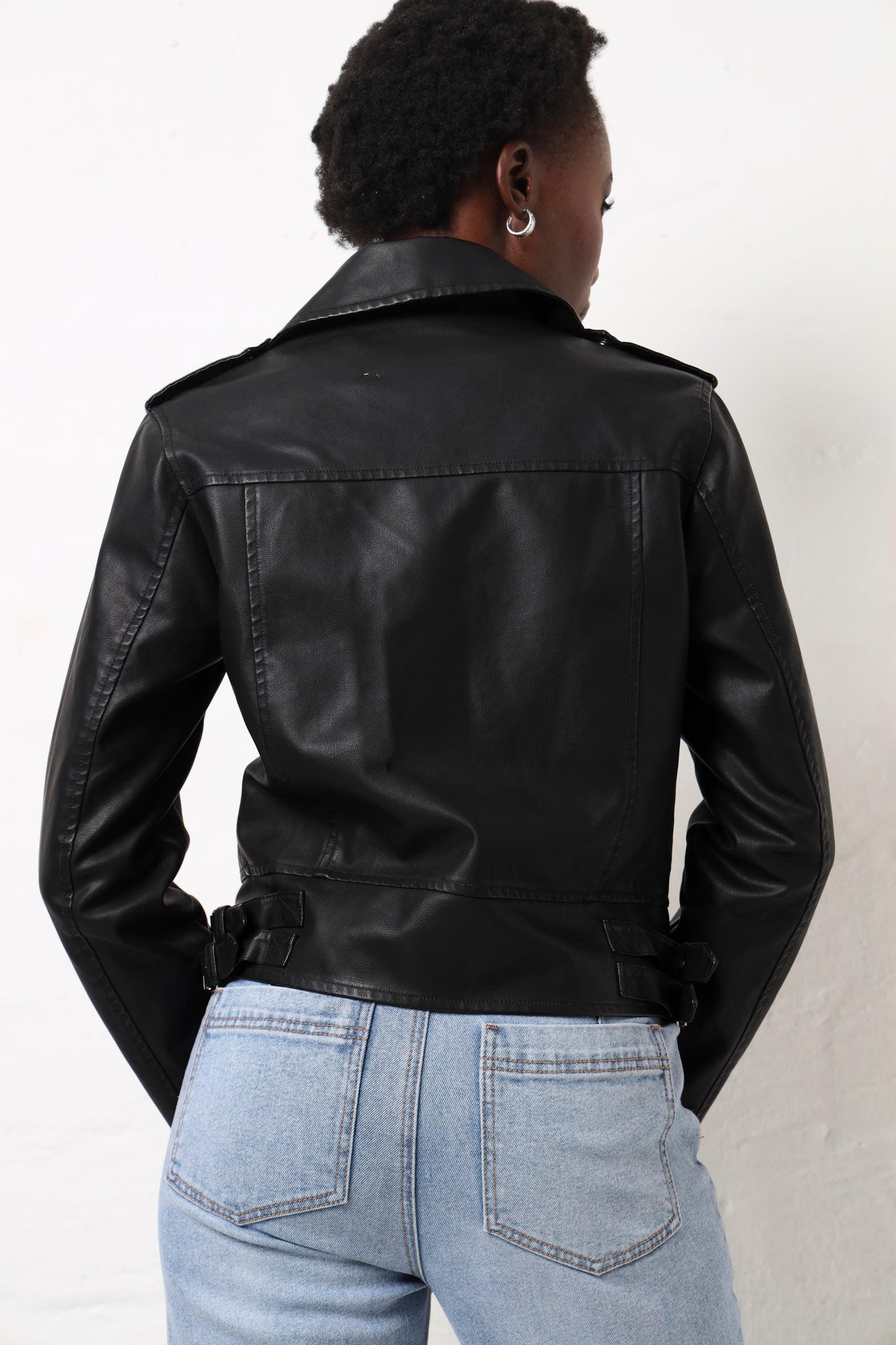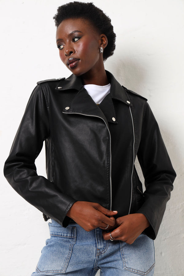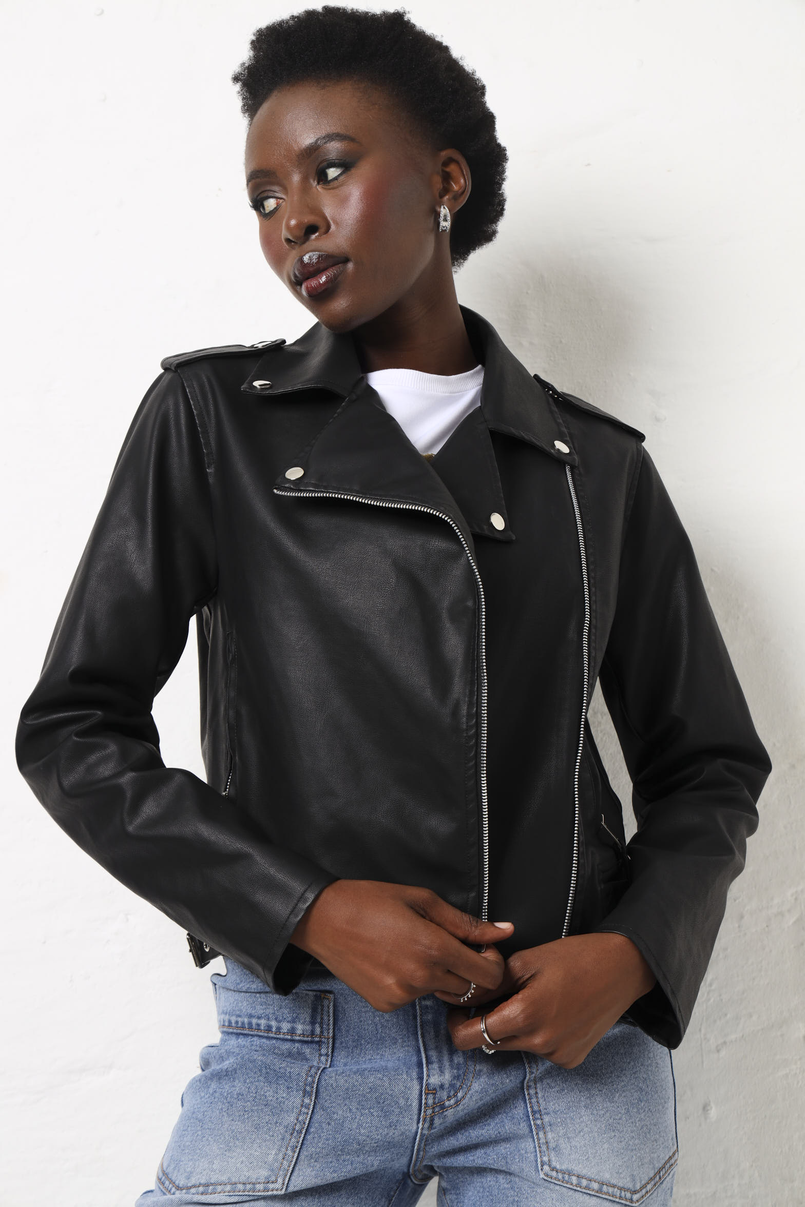 Own the streets in this fearless Double Tab Detail PU Biker Jacket. Bold black polyurethane with signature double tab accents delivers instant attitude. Sleek, durable, and unapologetically cool the rebel's choice.