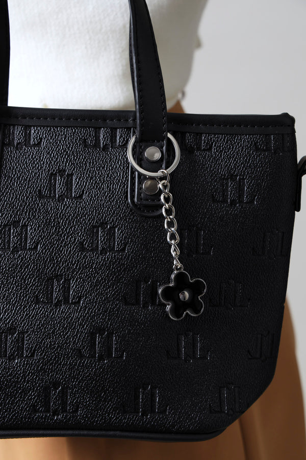 Embossed Monogram Epoxy Flower Charm Tote Bag - Black