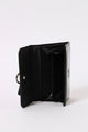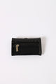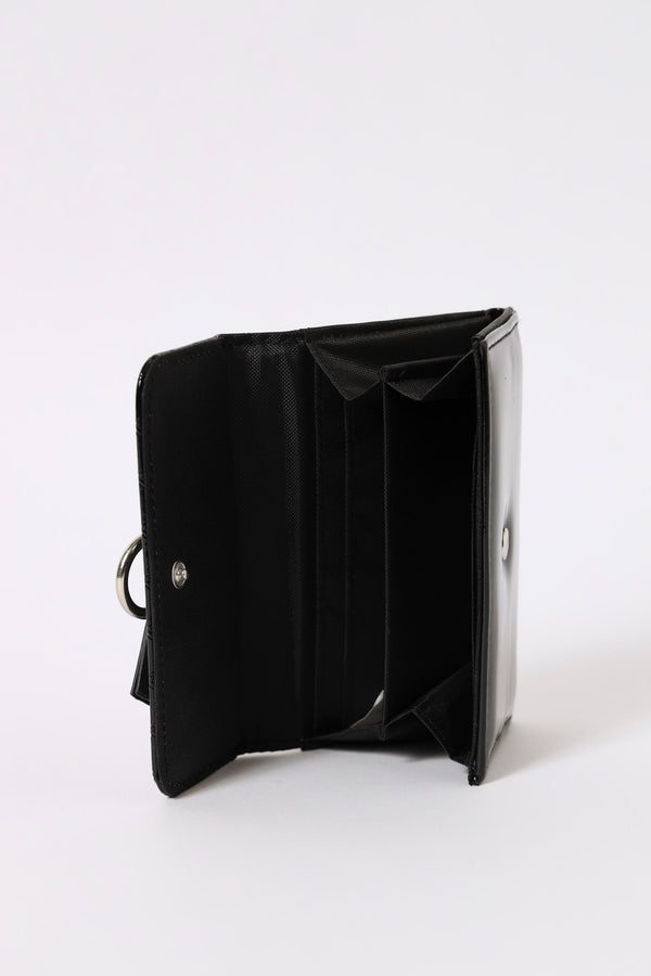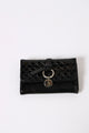 Embossed Monogram Flapover Metal Charm Wallet - Black/Silver