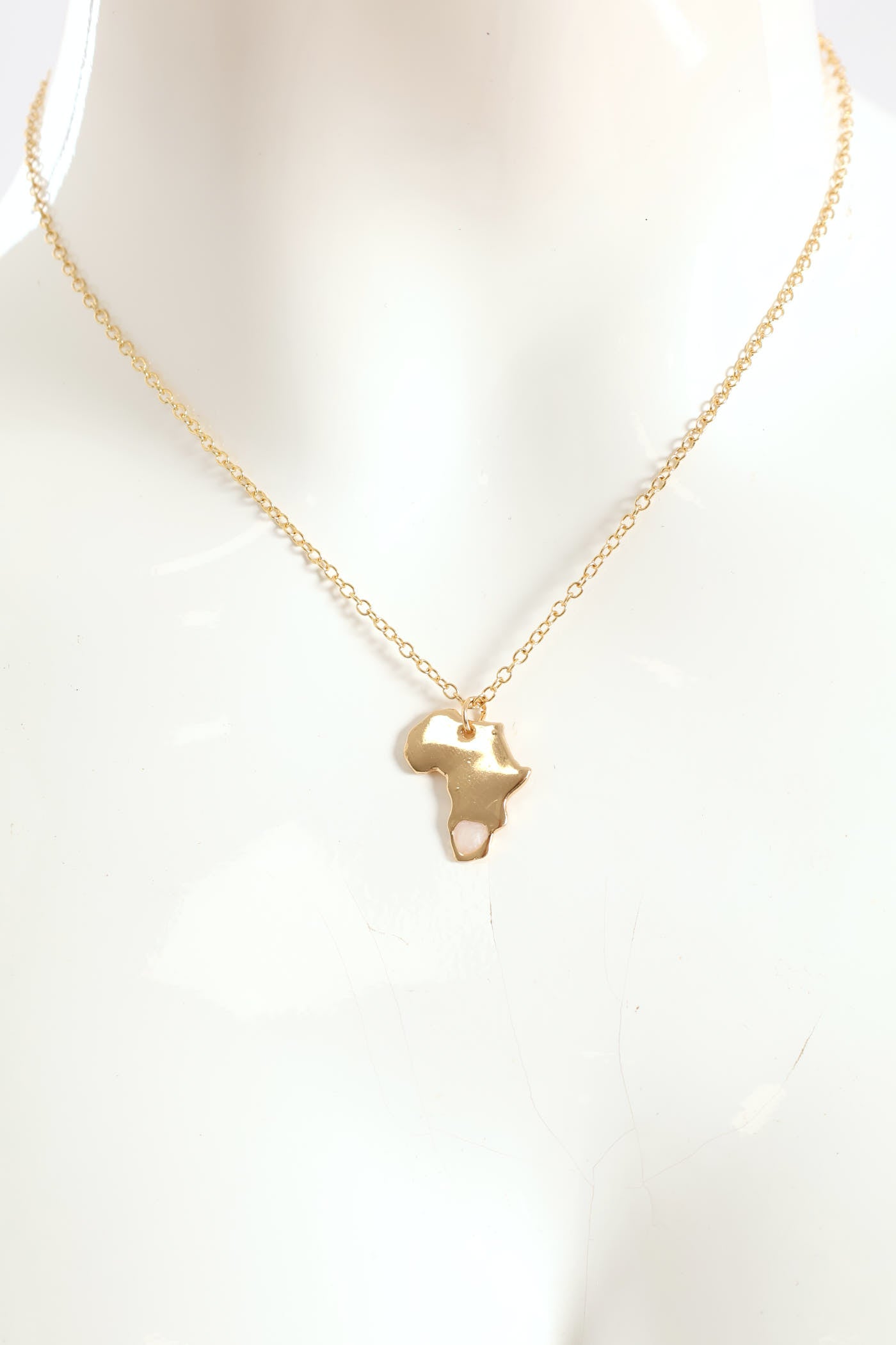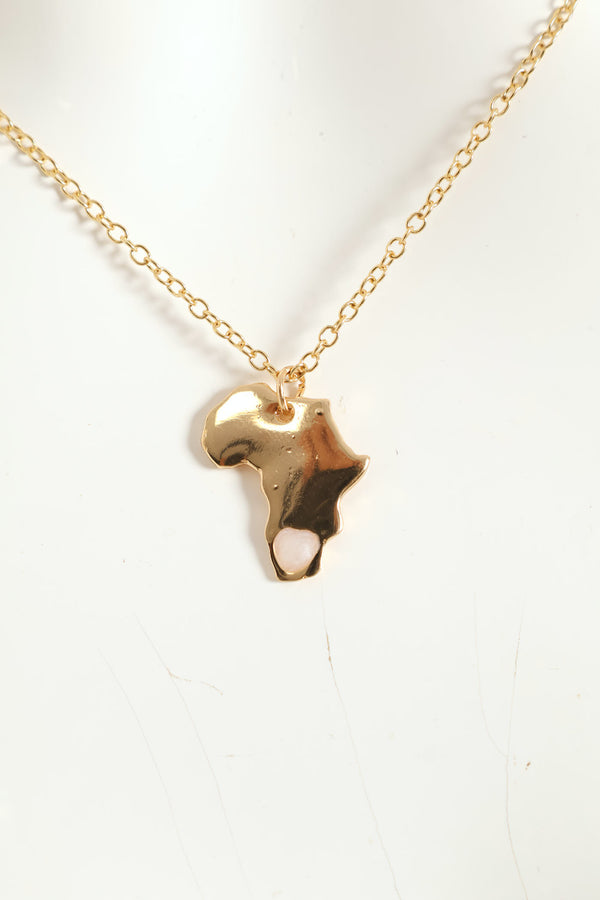 Epoxy Africa Charm Necklace & Stud Earrings - White Gold
