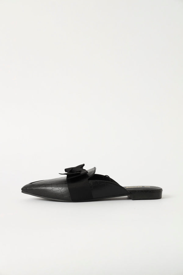 Fabric Bow Pointy Push In Mule- Black