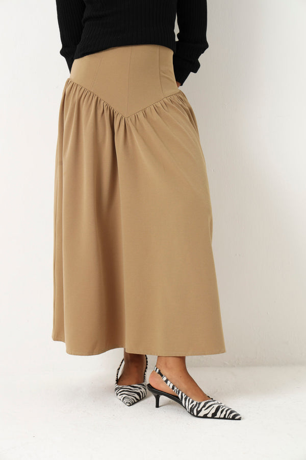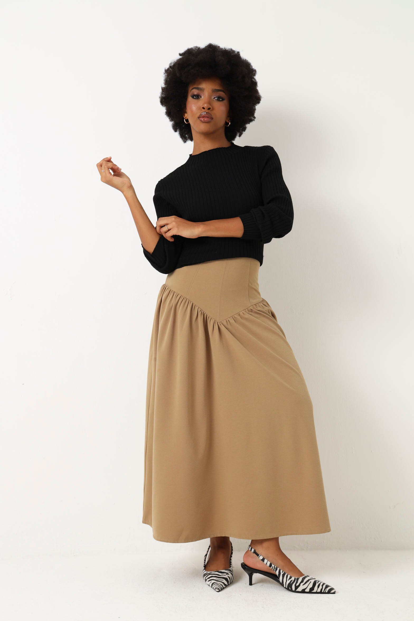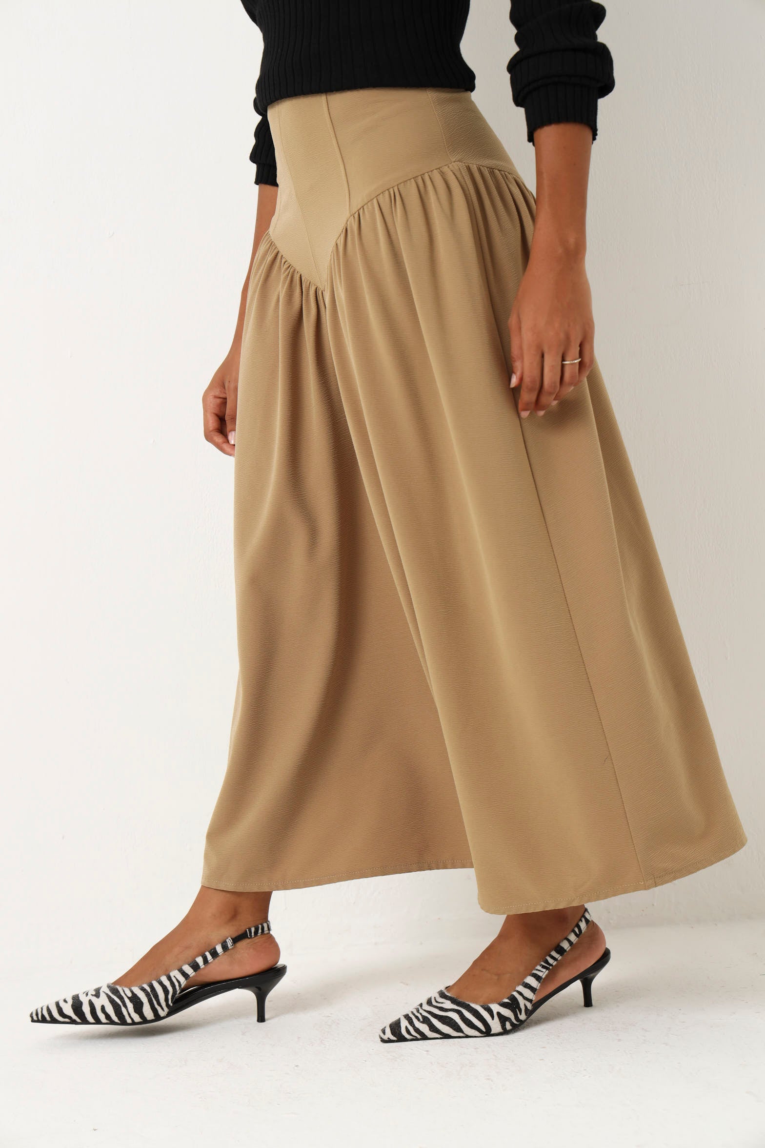 Elevate your wardrobe with this timeless Fit and Flare Woven Maxi Skirt in a versatile stone tone. The fitted waistband hugs your curves while the flowing skirt creates an elegant silhouette that flatters every body type. Crafted from quality woven fabric, it offers comfort and breathability for all-day wear. Perfect for casual outings, weekend brunches, or dressed-up occasions. The neutral stone shade pairs effortlessly with any top in your collection, making it a go-to piece for endless styling possibilities.