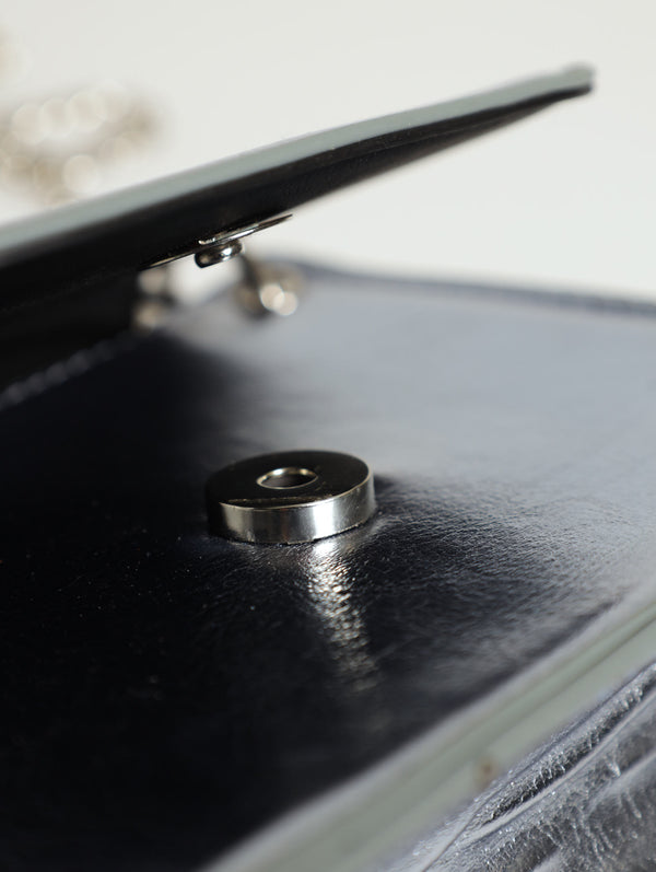 The Flapover Chunky Chain Satchel is perfect for the fashion-savvy individual. It features a sturdy chunky chain handle and magnetic clip closure to ensure your belongings stay secure. The satchel is compact yet stylish, making it the perfect accessory for your look.