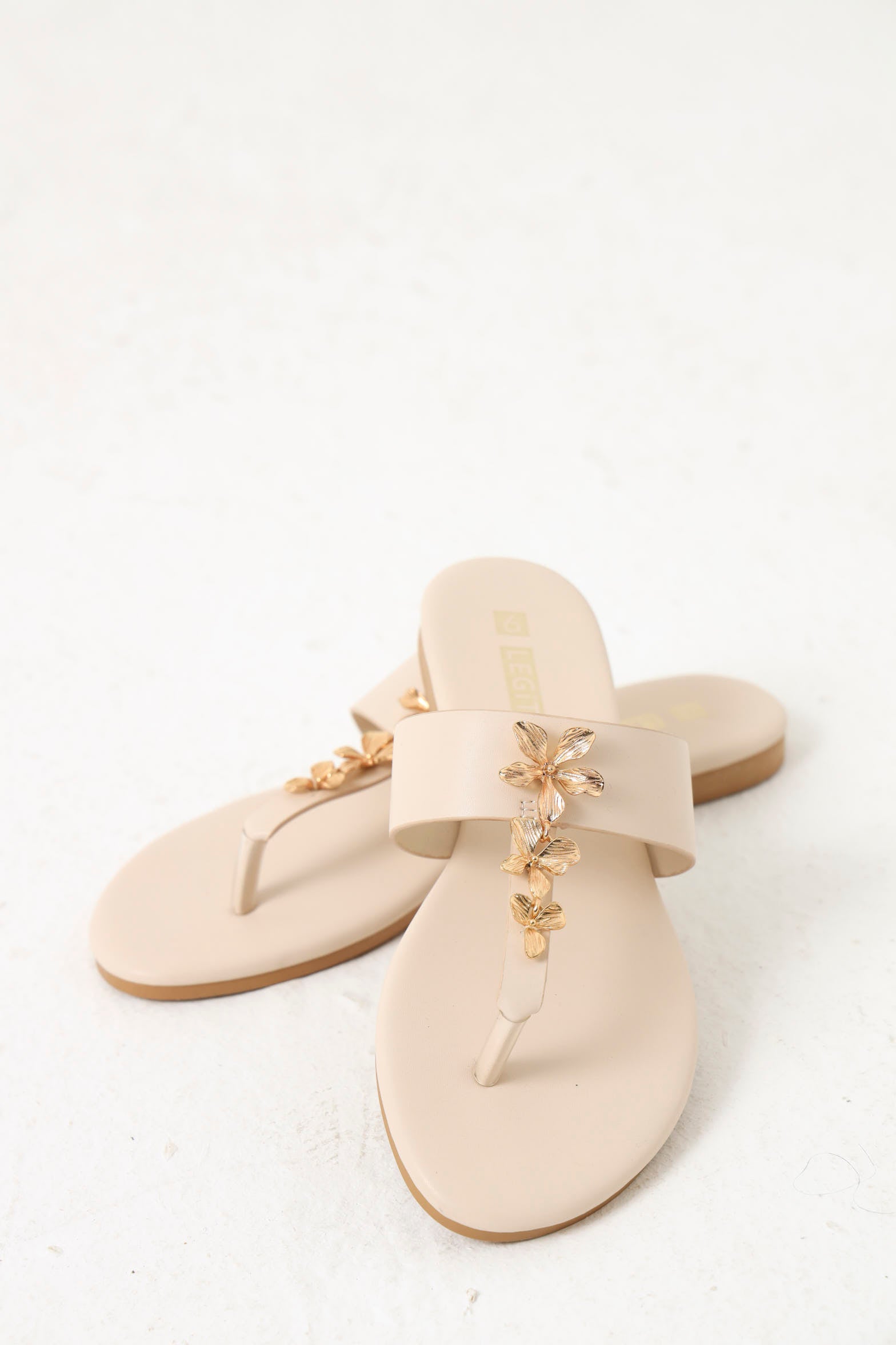 Effortless comfort meets timeless style with this flat slip-on thong sandal. The taupe hue pairs seamlessly with any wardrobe, while the delicate flower detail adds a touch of feminine charm. Designed for all-day wear, the soft thong construction provides a secure yet breathable fit. Perfect for casual outings, beach days, or relaxed weekends. Slip them on and go.