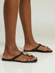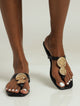 Flat Thong Push In Sandal With Round Crinkle Trim - Black
