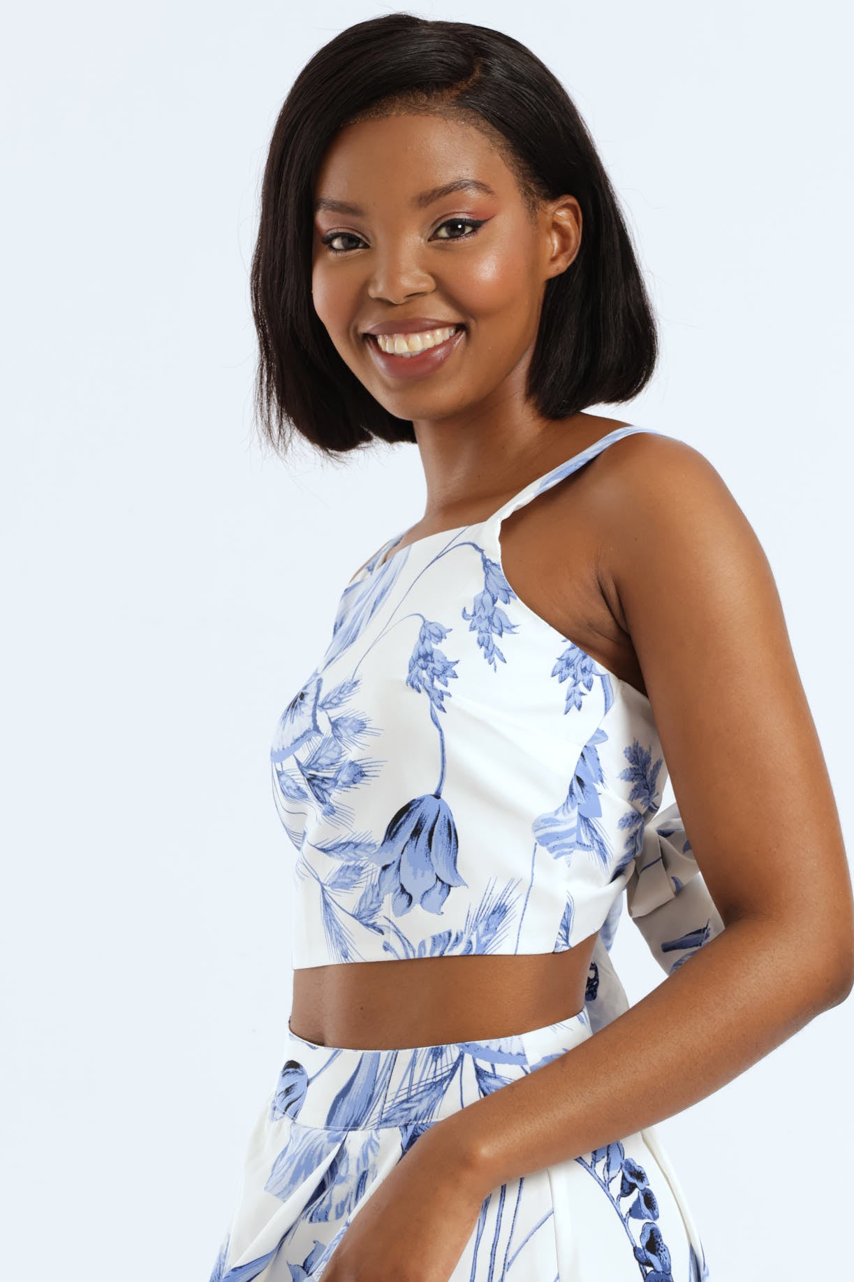 Bring a burst of springtime fun to your wardrobe with this Floral Poplin Tie Back Crop Top. Its vibrant multi-floral print and playful tie-back detail add a sweet and flirty touch to any outfit. Lightweight and breezy, it’s perfect for sunny days filled with smiles and style.