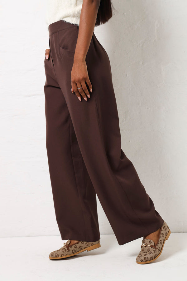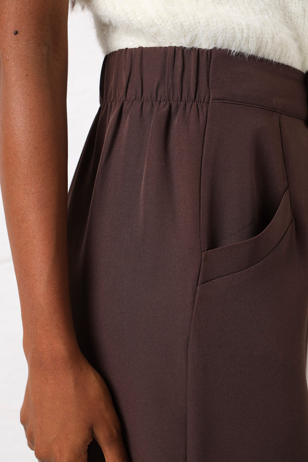 Front Pocket Elasticated Waist Barbi Pant - Chocolate