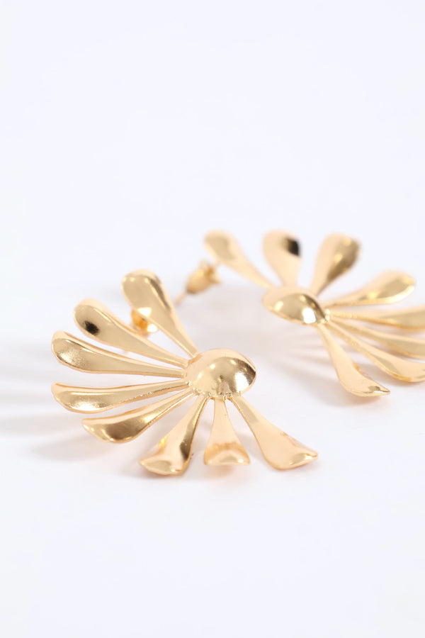 Make a bold impression with these Half Flower Statement Earrings in radiant gold. Their unique half-flower design adds a whimsical twist to any outfit, perfect for those who love a playful touch in their accessories. Lightweight and eye-catching, they effortlessly elevate your everyday look with a dash of elegance and fun.