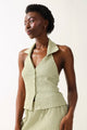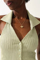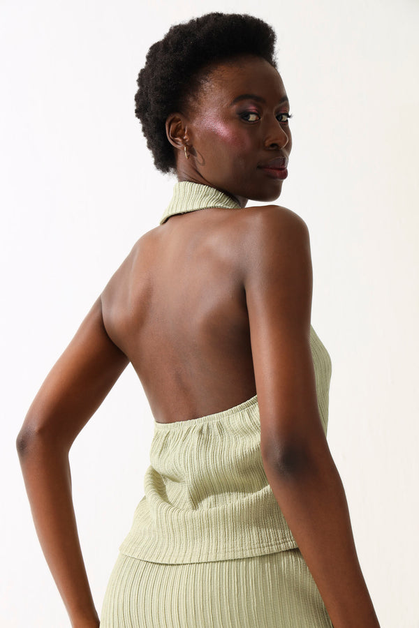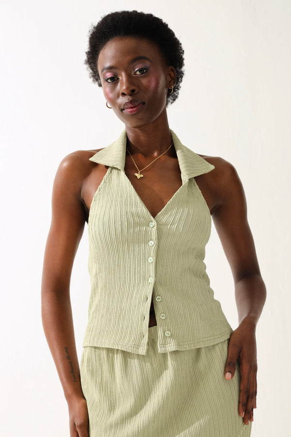 Make a statement with this chic halterneck collared button-through shirt in calming sage. The unique halter neckline adds a flirty, fashion-forward twist while the classic collar keeps things polished and put-together. Button through the front for easy styling versatility—wear it open over a tee for laid-back cool, or button up for a more refined look. The relaxed fit ensures comfort without sacrificing style, making it perfect for everything from weekend hangouts to casual office days. A playful piece that proves you don't need to compromise on personality or practicality.