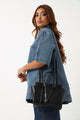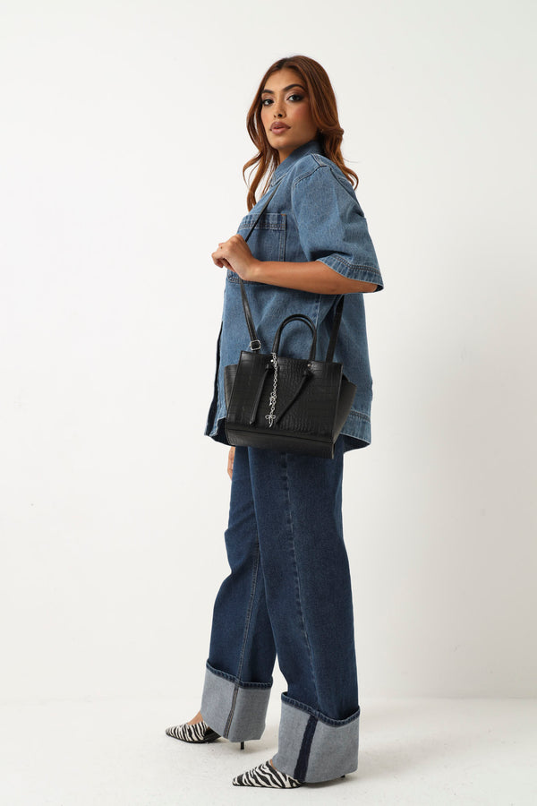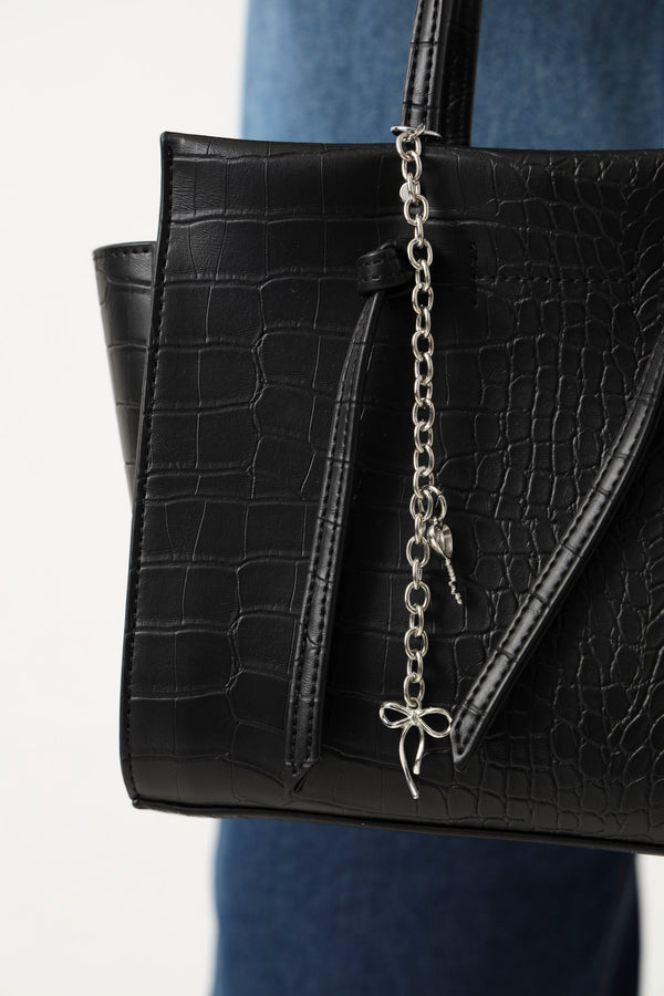 Heart Charm Double Front Knot Tote Bag - Black/Silver