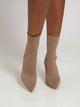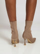 Heeled Mid Calf Pointy Sock Boot With Gold Heel - Taupe