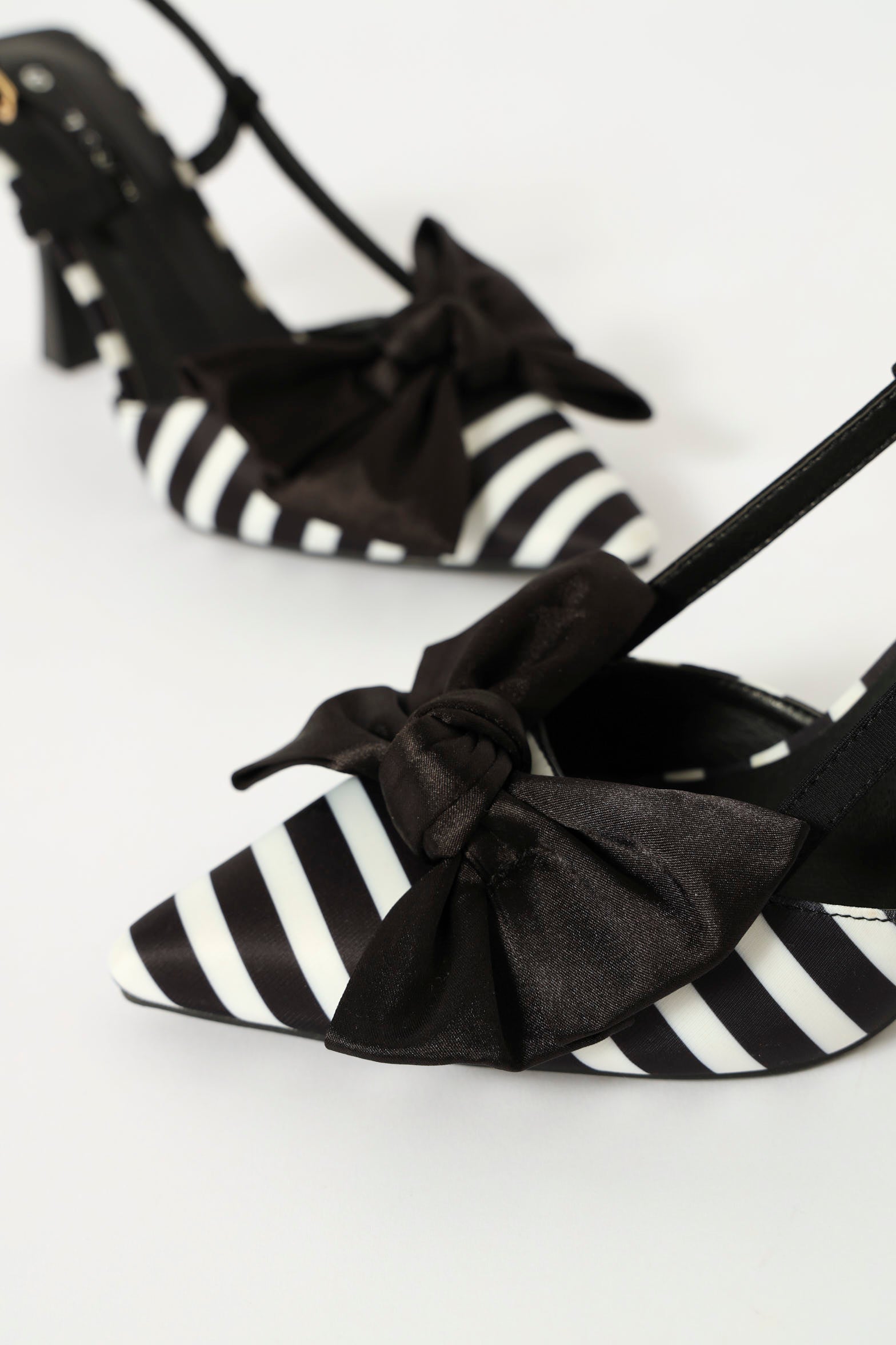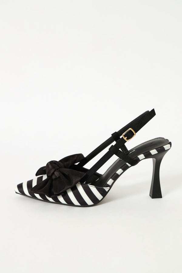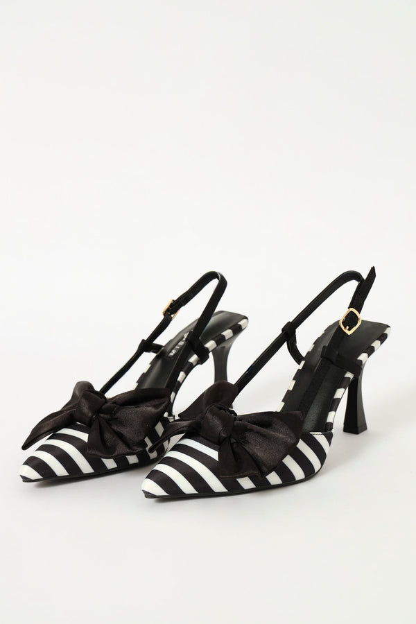 Hi Stiletto Slingback Striped Court Heel - Black/White