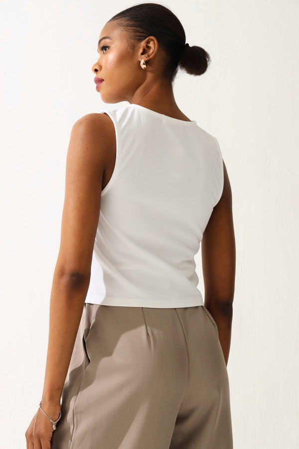 Knit Button Through Vest - White