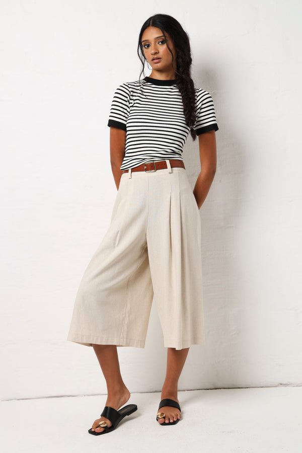 Meet your new go to for those days when you want to look put-together without trying too hard. These Bermuda shorts nail the linen-look aesthetic with their relaxed yet refined vibe. The pleated front adds a touch of tailored charm, while the belt cinches everything in just right. In a versatile oatmeal tone, they're your ticket to effortless style perfect for weekend adventures, casual office days, or anywhere you want to feel comfortable and fabulous.