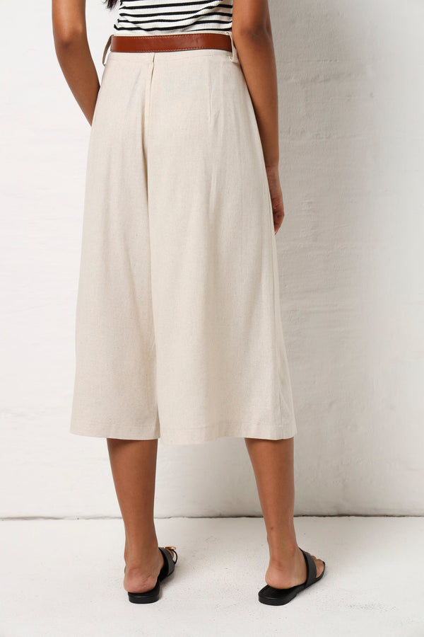 Linen Look Belted Bermuda Shorts With Pleat Detail - Oatmeal