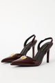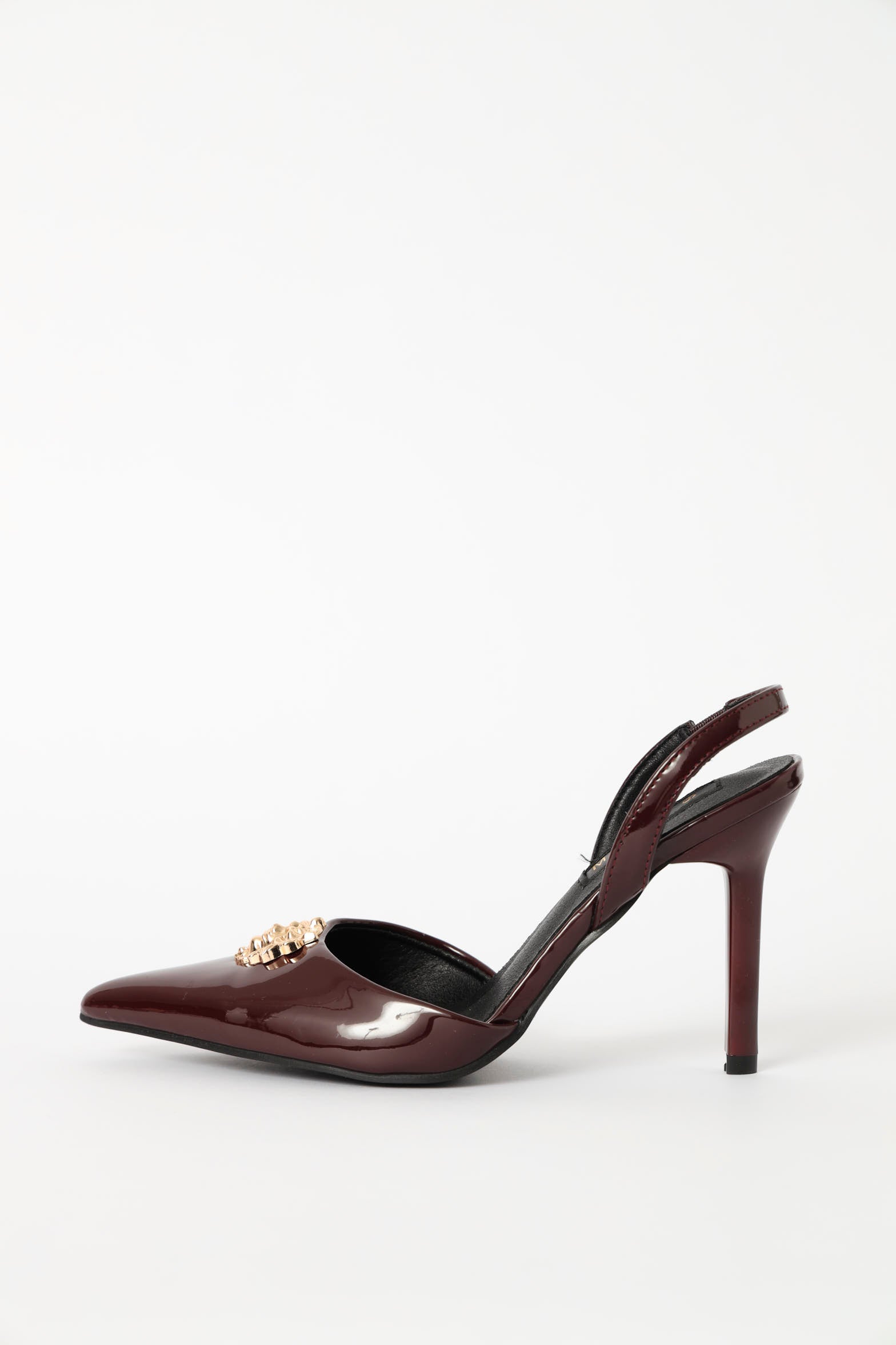 Elevate your evening look with these stunning slingback heels featuring a luxurious lion trim detail. The wine-coloured silhouette offers timeless sophistication, while the secure slingback design ensures all-day comfort. Perfect for special occasions, cocktail events, or whenever you want to make a bold statement. The rich wine tone pairs beautifully with both neutral and jewel-toned outfits, making these heels a versatile addition to your collection. Step out with confidence and grace.