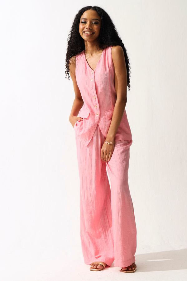 Elevate your layering game with this fabulous long-length waistcoat in soft pink! Featuring a textured fabric that adds visual interest and dimension, this button-through style is your new go-to piece for effortless sophistication. Perfect for throwing over dresses, tees, or shirts, it's the versatile companion that transforms any outfit from basic to brilliant. The extended length provides flattering coverage while the structured silhouette keeps things polished and put-together. Whether you're dressing up for a night out or keeping it casual, this waistcoat brings personality and charm to your wardrobe. A playful essential that proves pink is always in season!