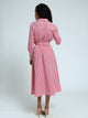 Long Sleeve Asymmetric Stripe Poplin Shirt Dress - White/Red
